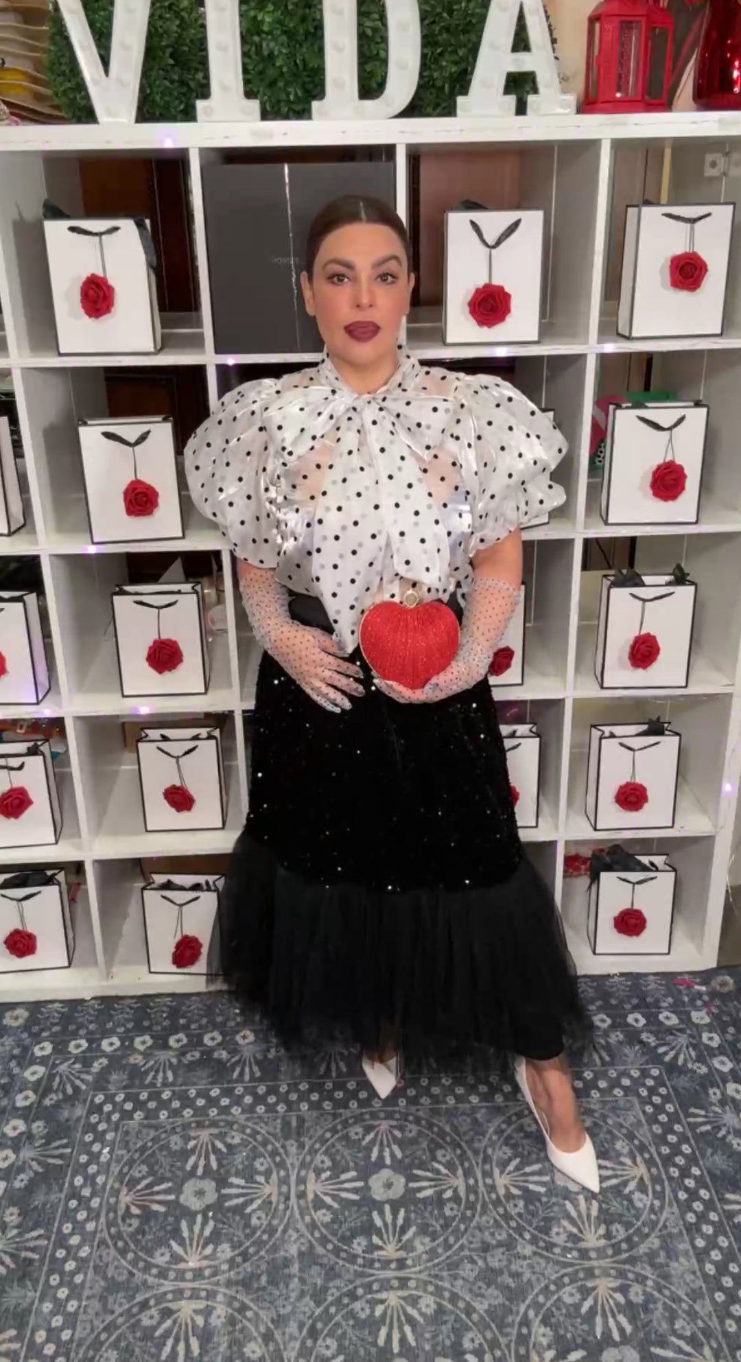 Blusa Blanca Boleada Negras Manga Balloon Semi Satinada (#100)