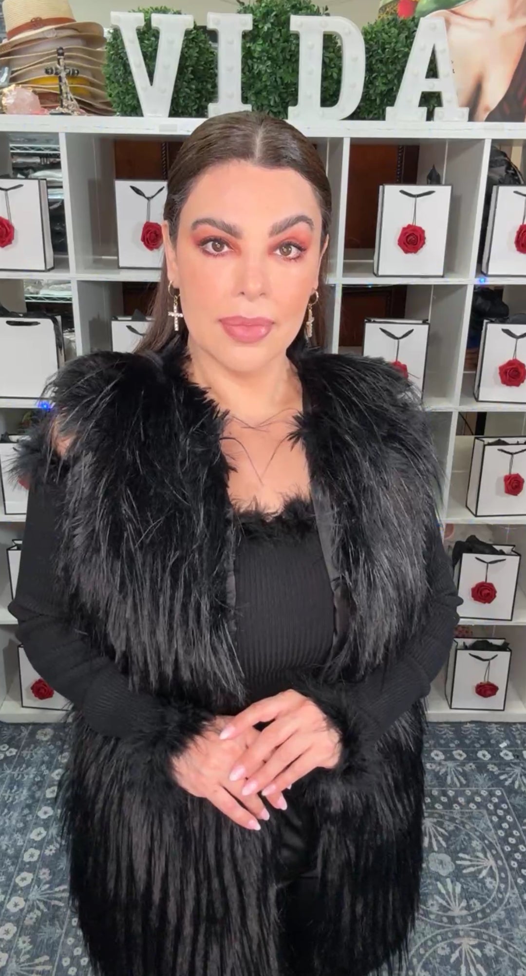 Chaleco Negro Furry Largo Unitalla (#153)