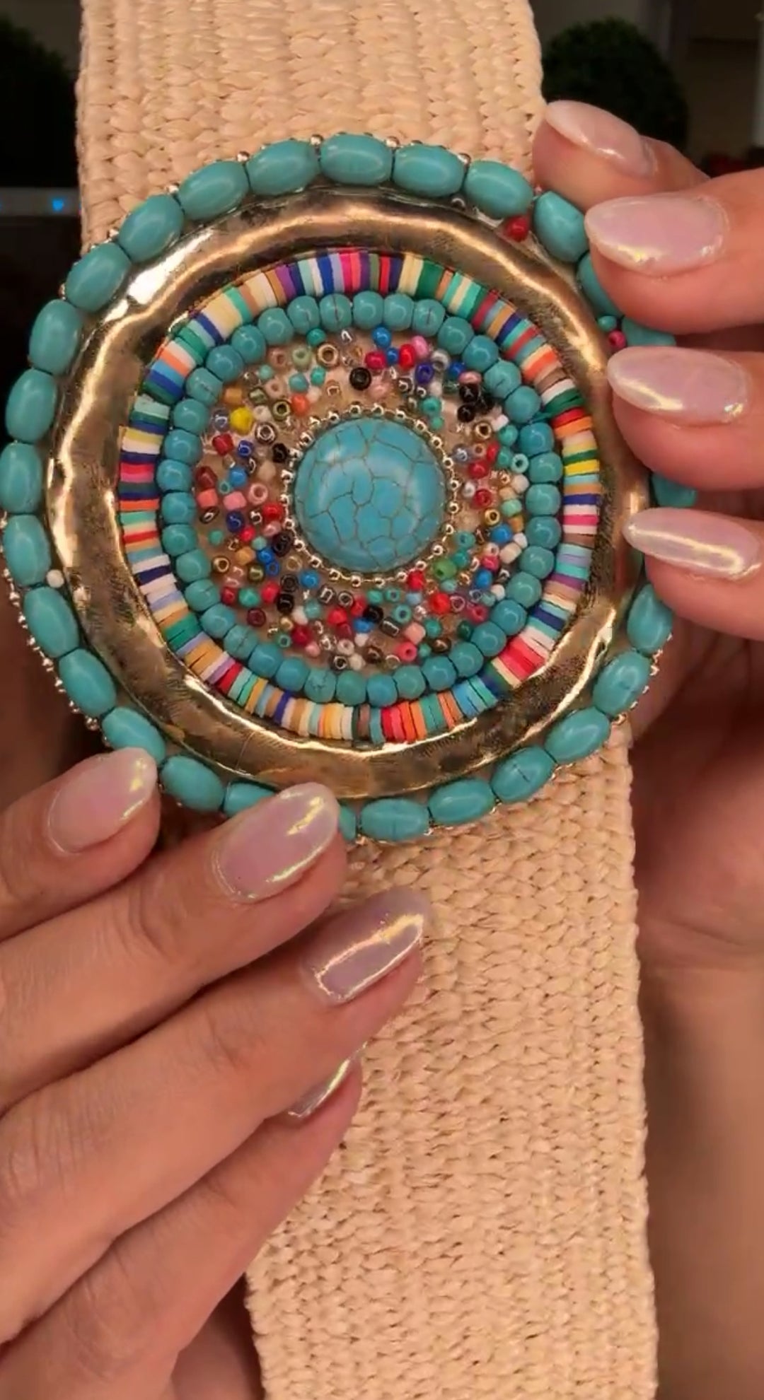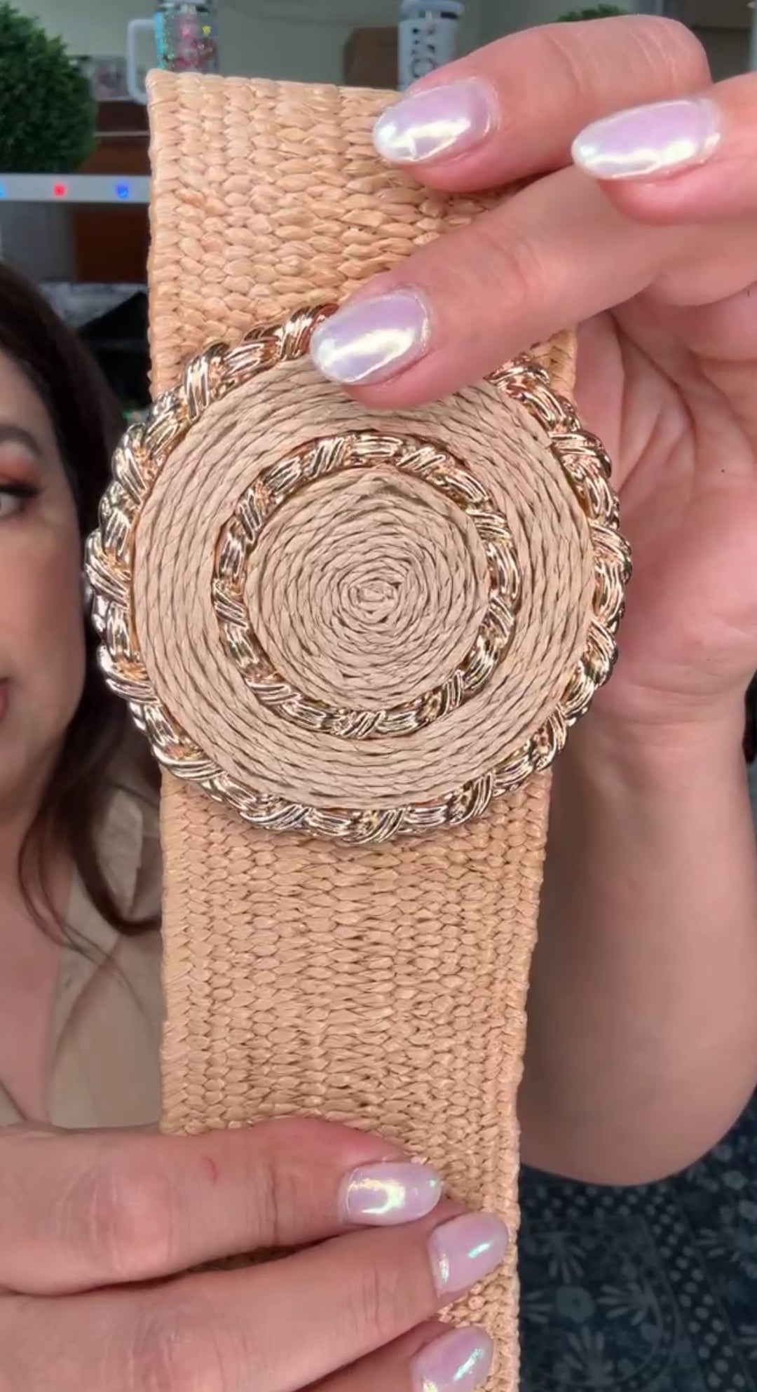 Cinto Beige Ebilla Rafia Barbas Circular Stretch (#120)