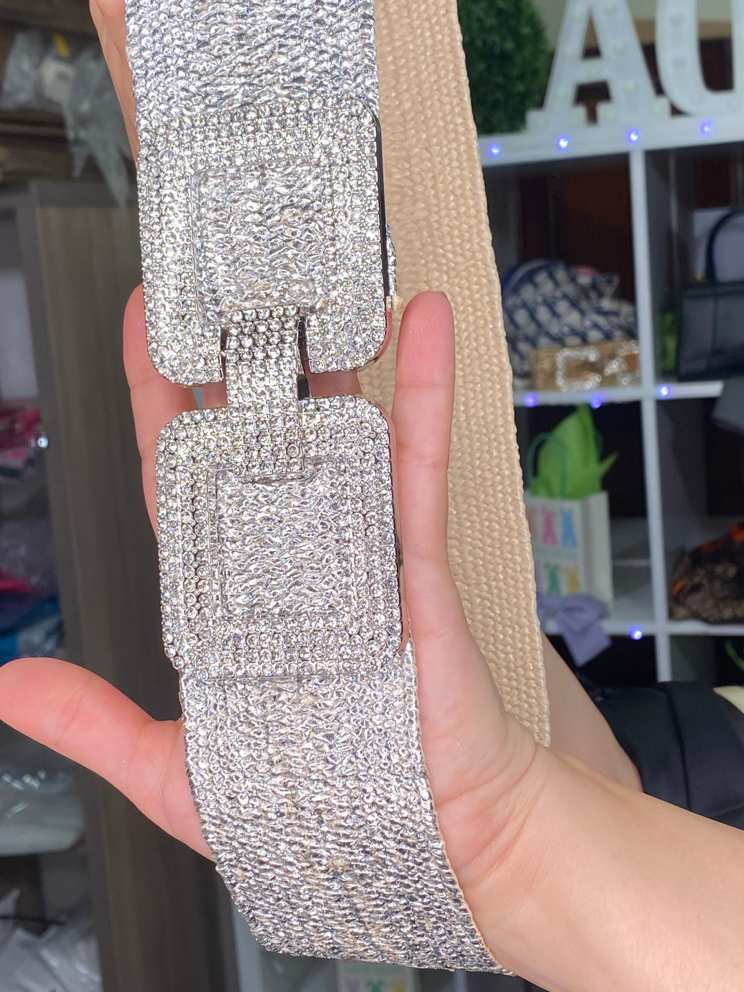 Cinto Plateado Pedreria Rafia Stretch (#156)
