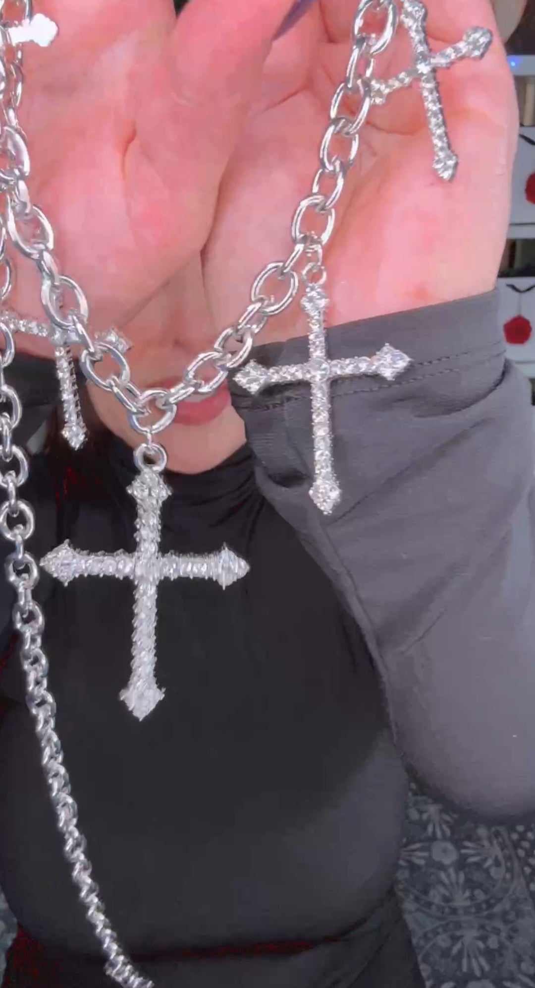 Cinto Plateado Cruces Pedreria Cadena (#117)