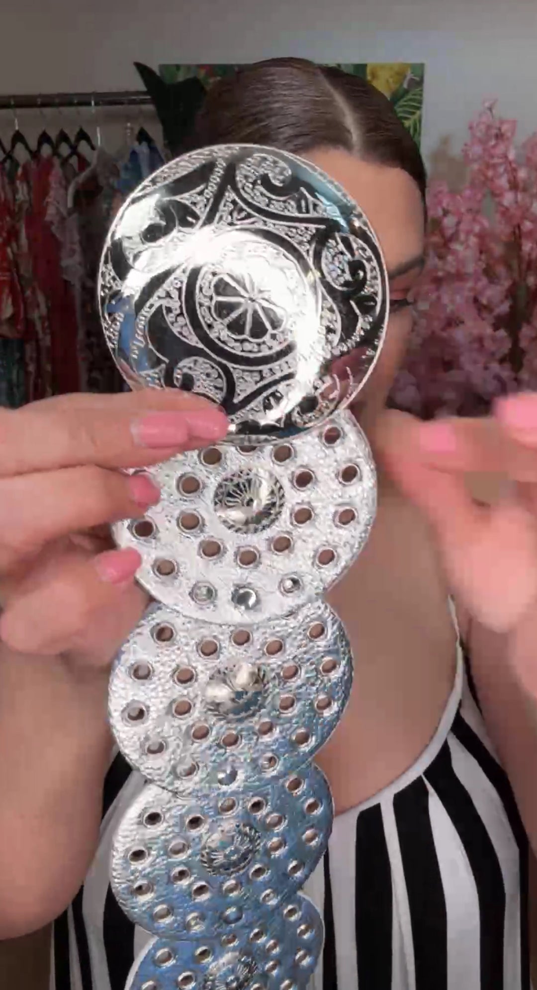 Cinto Plateado Rafia Stretch Ebilla Circular (#119)