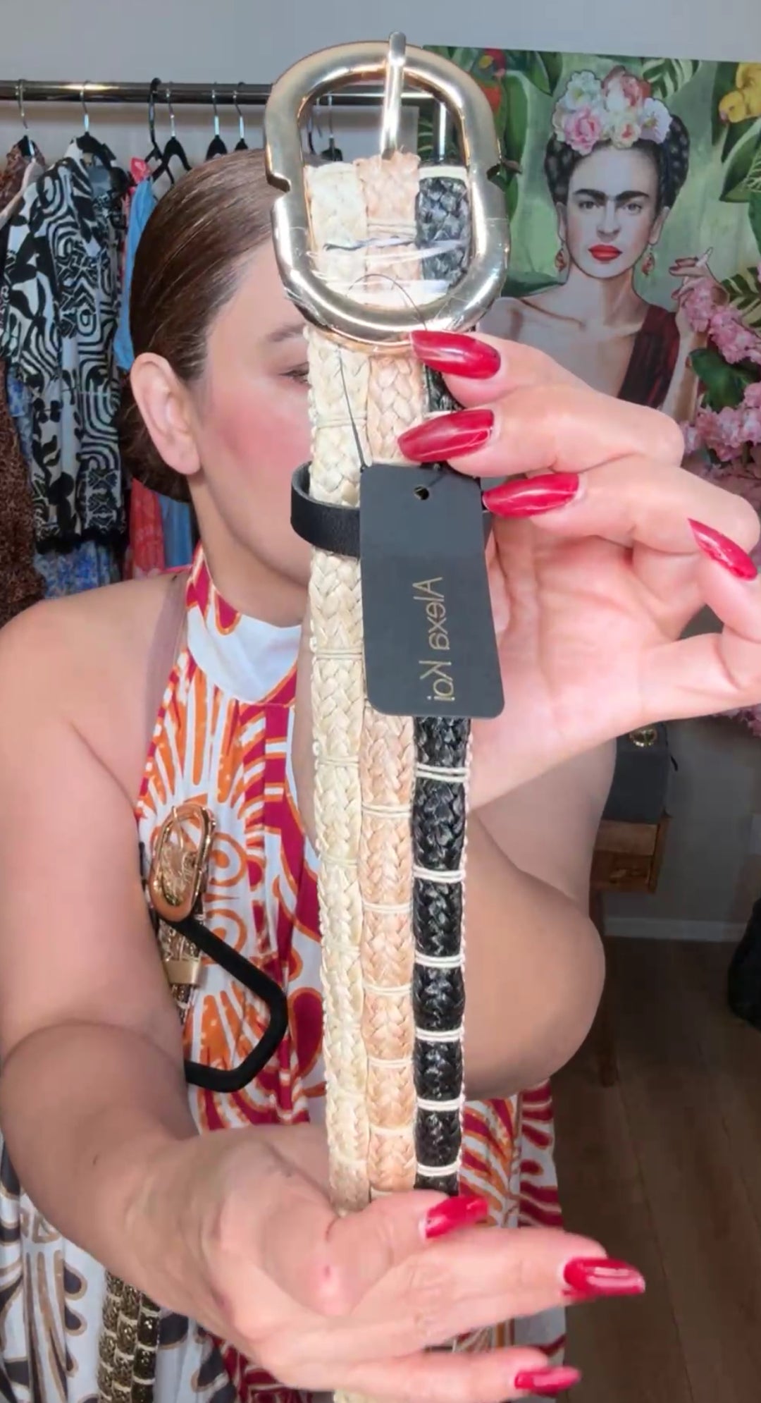 Cinto Negro Y Natural Rafia Luxury Hebilla Dorada (#117)