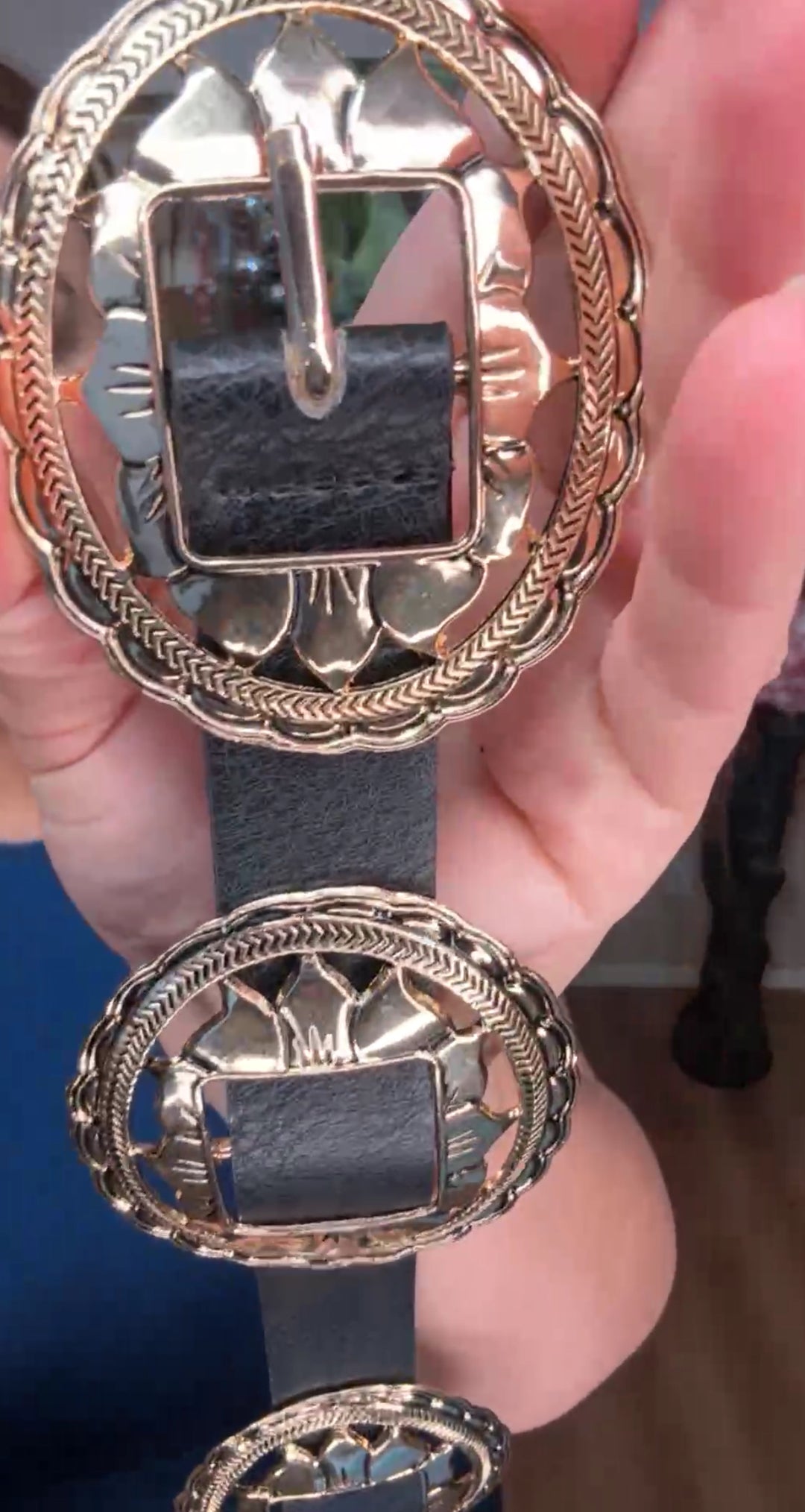 Cinto Negro Y Dorado Círculos Hebilla Piedra Turquesa (#121)