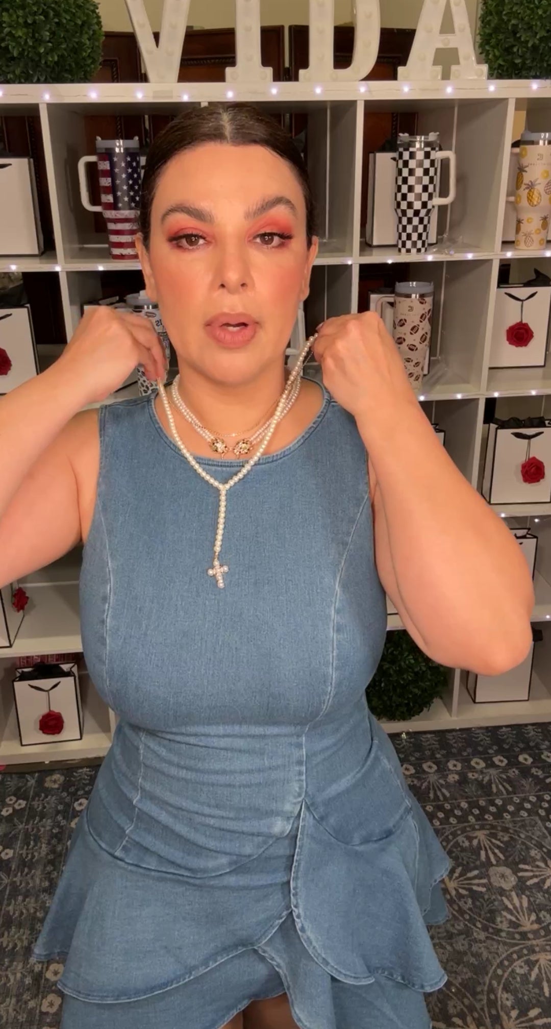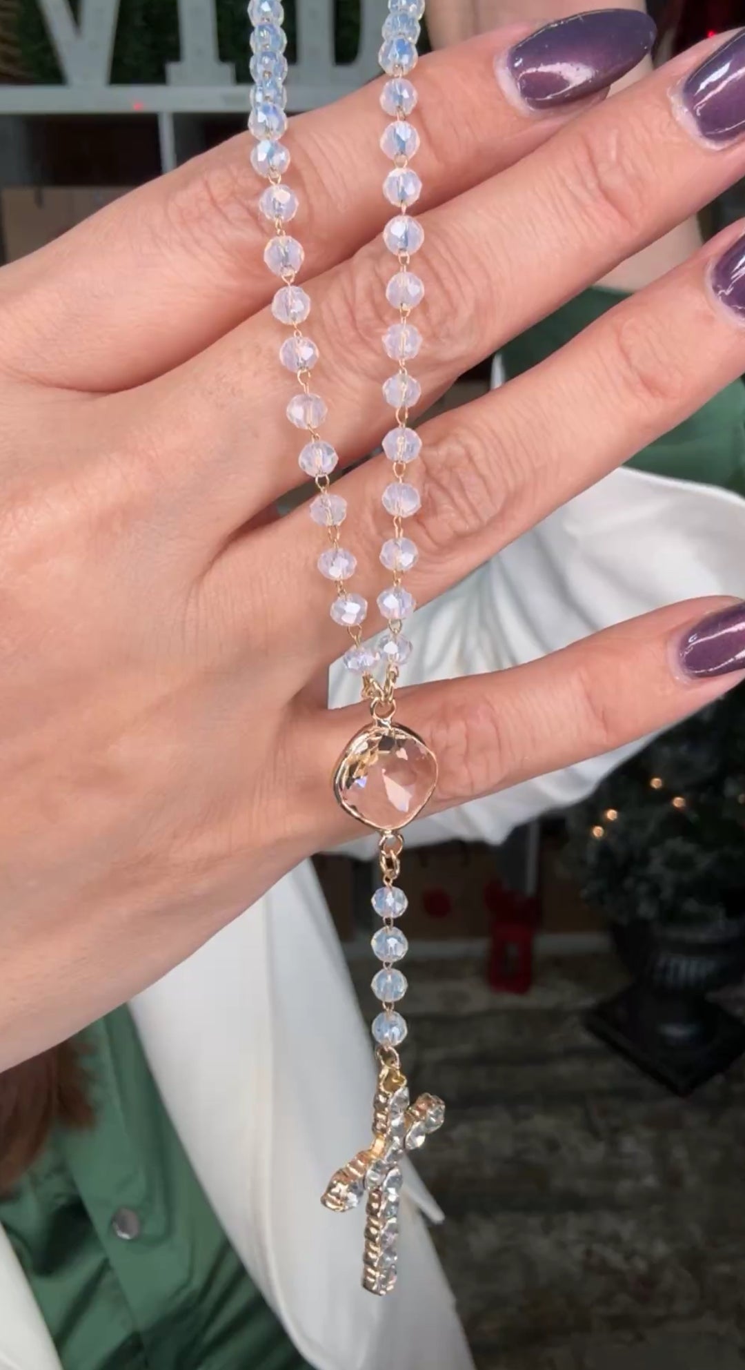 Collar Beige Perlas Cruz Tipo Rosario (#112)