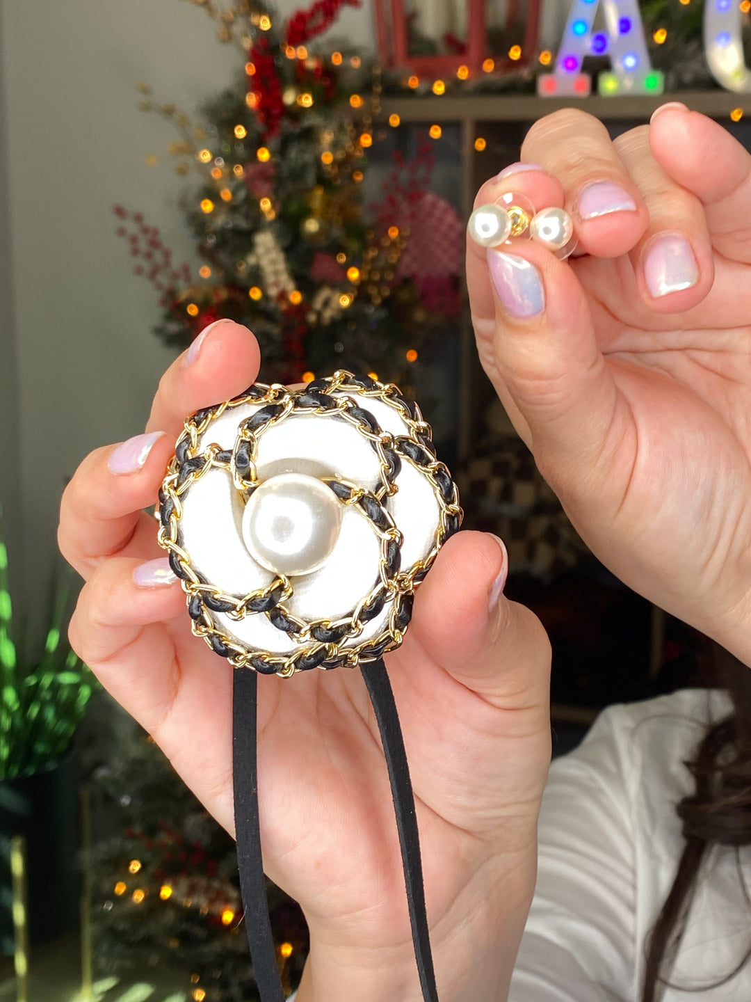 Collar Beige Flr Negra Camelia XL CC (#137)