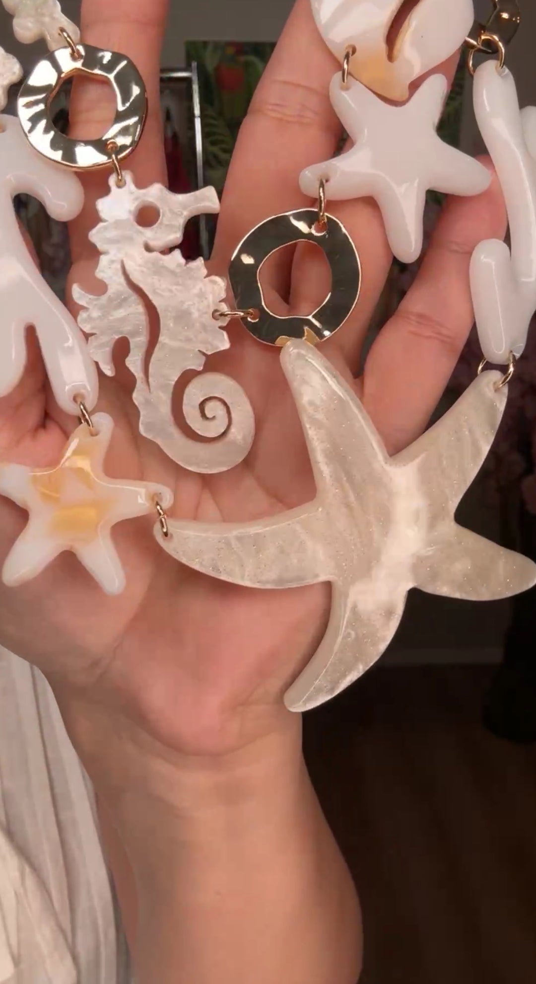 Collar Beige Y Dorado Caballo Y Estrella Mar (#152)