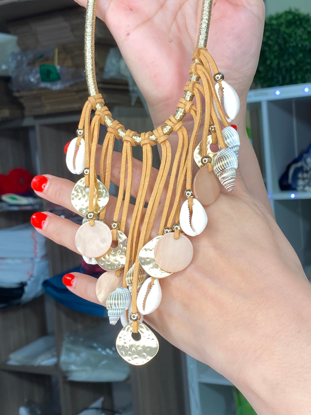 Collar Dorado Concha Y Perlas Con Cuentas (#187)