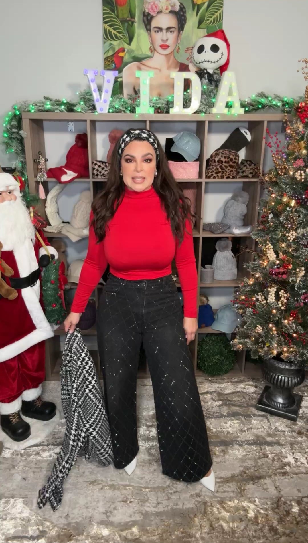 Pantalon Blanco y Negro a Cuadros Palazo Wrap (#298)