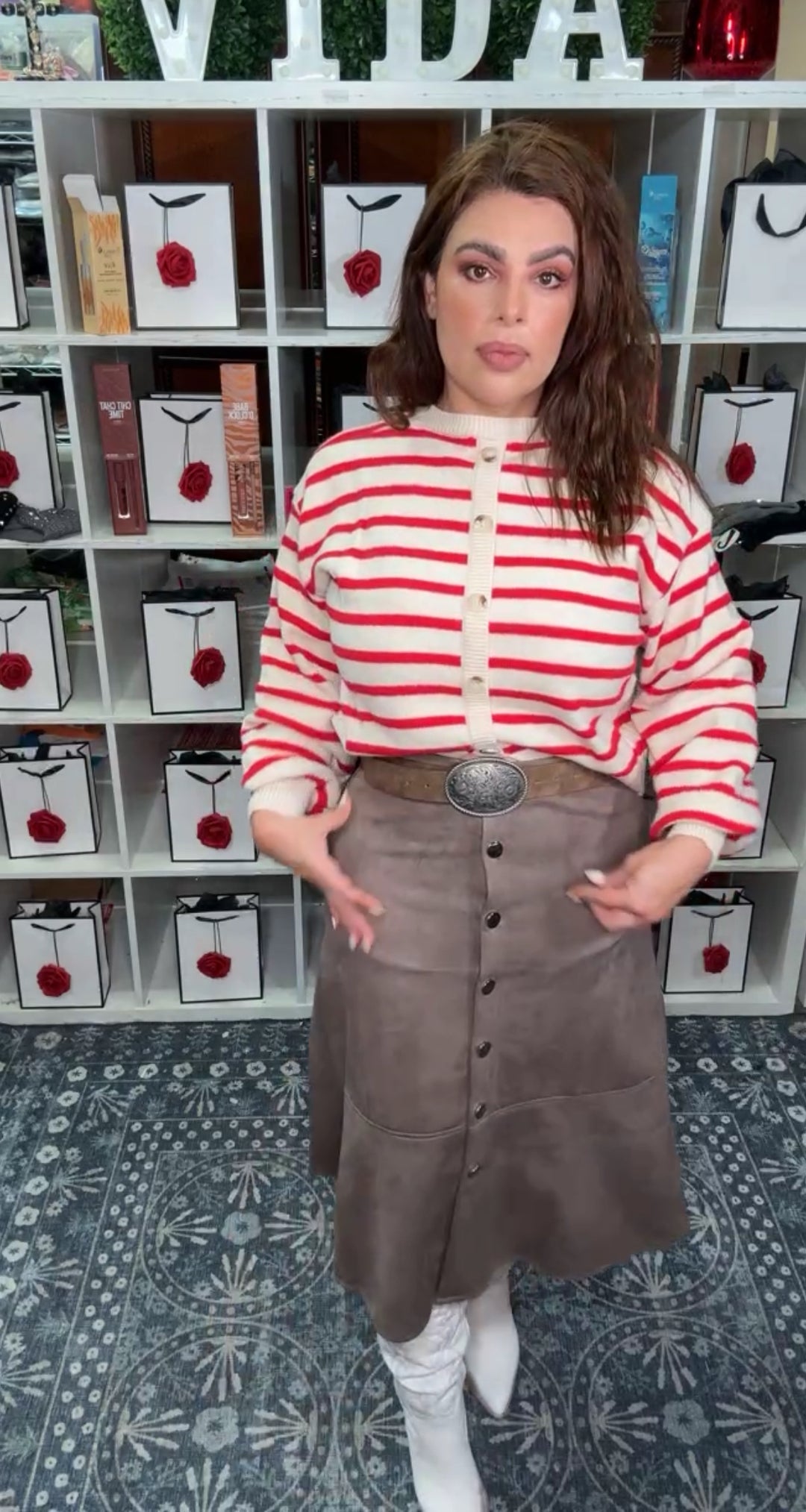 Sweater Blanco y Rojo Rallado Abotonado (#175)