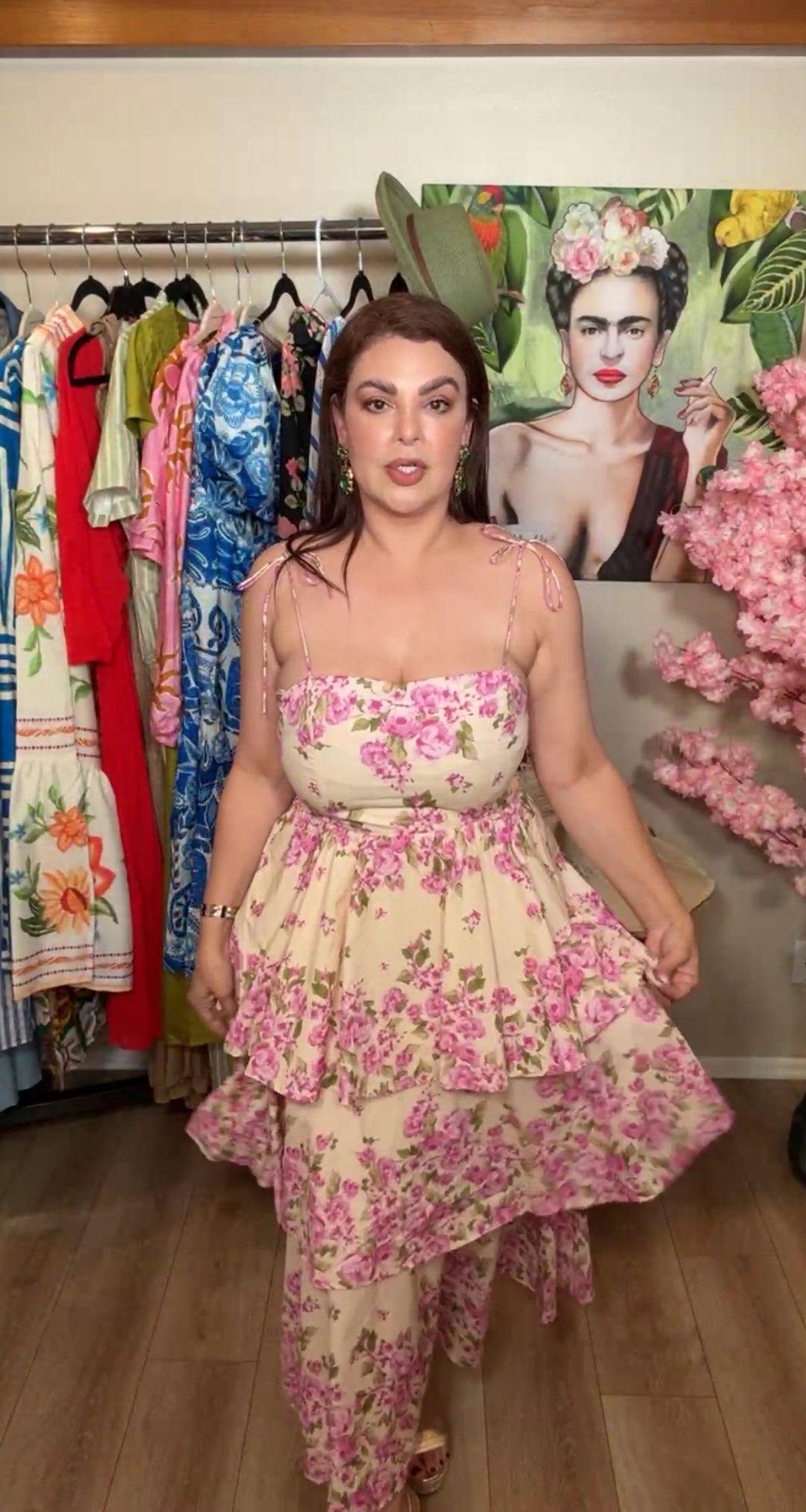 Vestido Blanco Flores Durazno Multi Moño Al Hombro Maxi (#128)