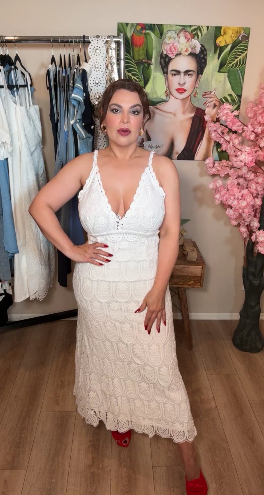 Vestido Blanco Tulle Y Crochet Fondo Nude Midi (#163)