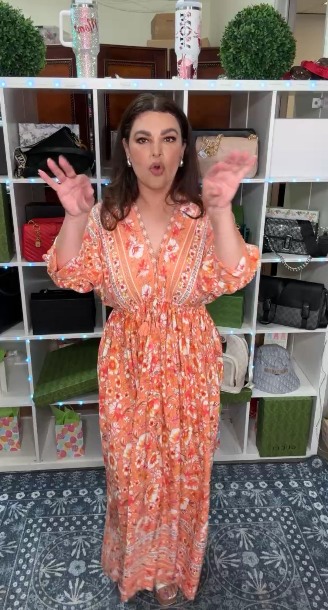 Vestido Durazno Y Amarillo Escote V Floral Maxi (#380)