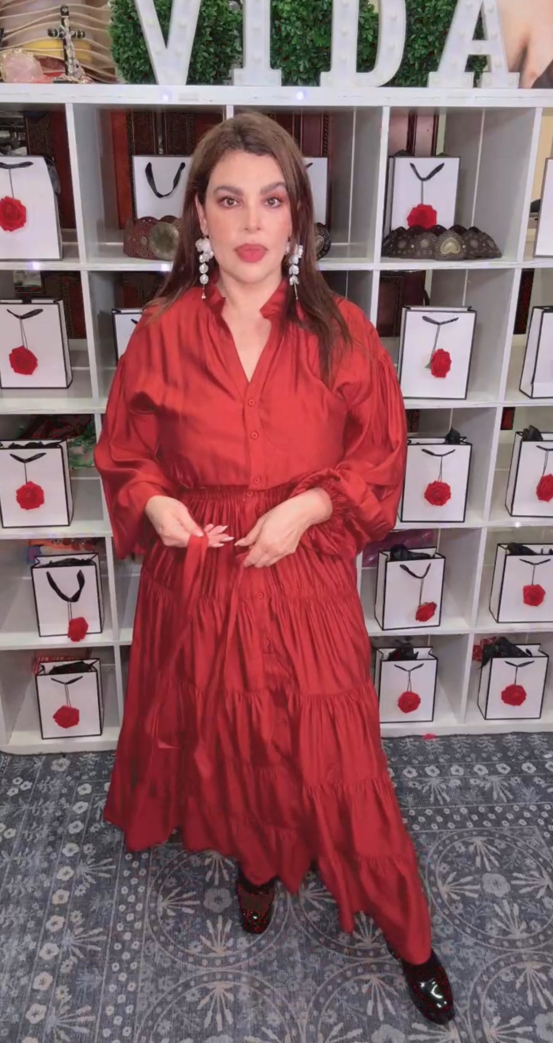 Vestido Ladrillo Tipo Camisa De Vuelo (#127)