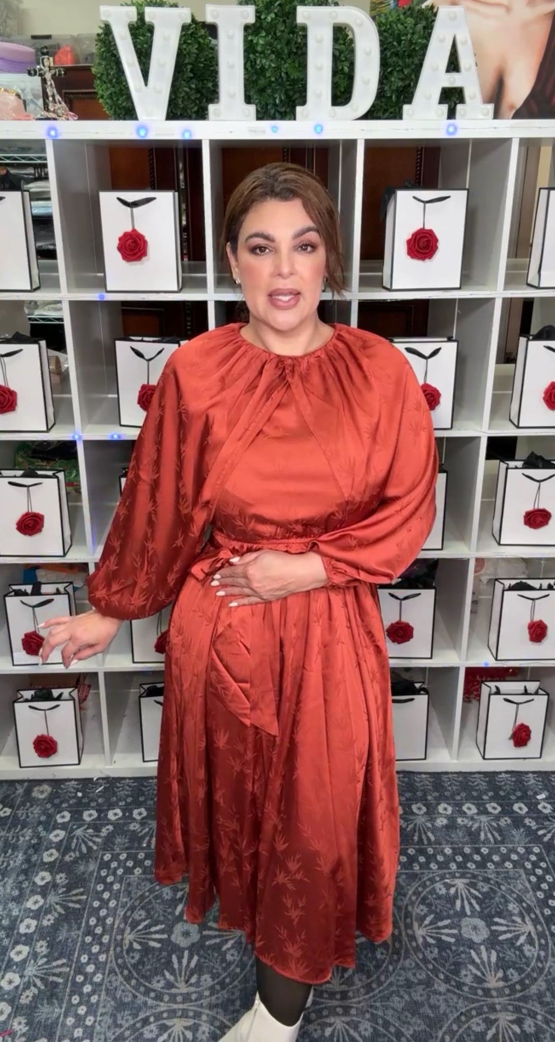 Vestido Cobre Hojas Blancas Lux Semi Satinado Midi (#123)