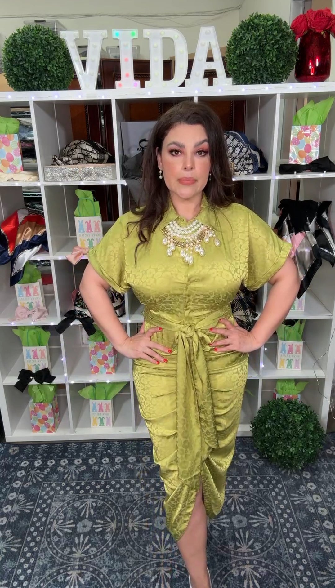 Vestido Latiste Verde Tropical Kimono Artwork Satinado (#143)