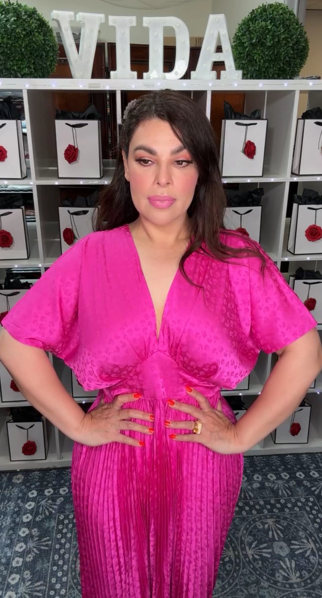 Vestido Magenta Satinado Jacquard Plizado (#126)