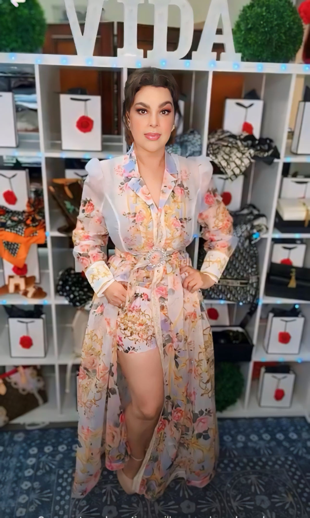 Vestido Latiste Rosa Palmera Corte Blazer (#253)
