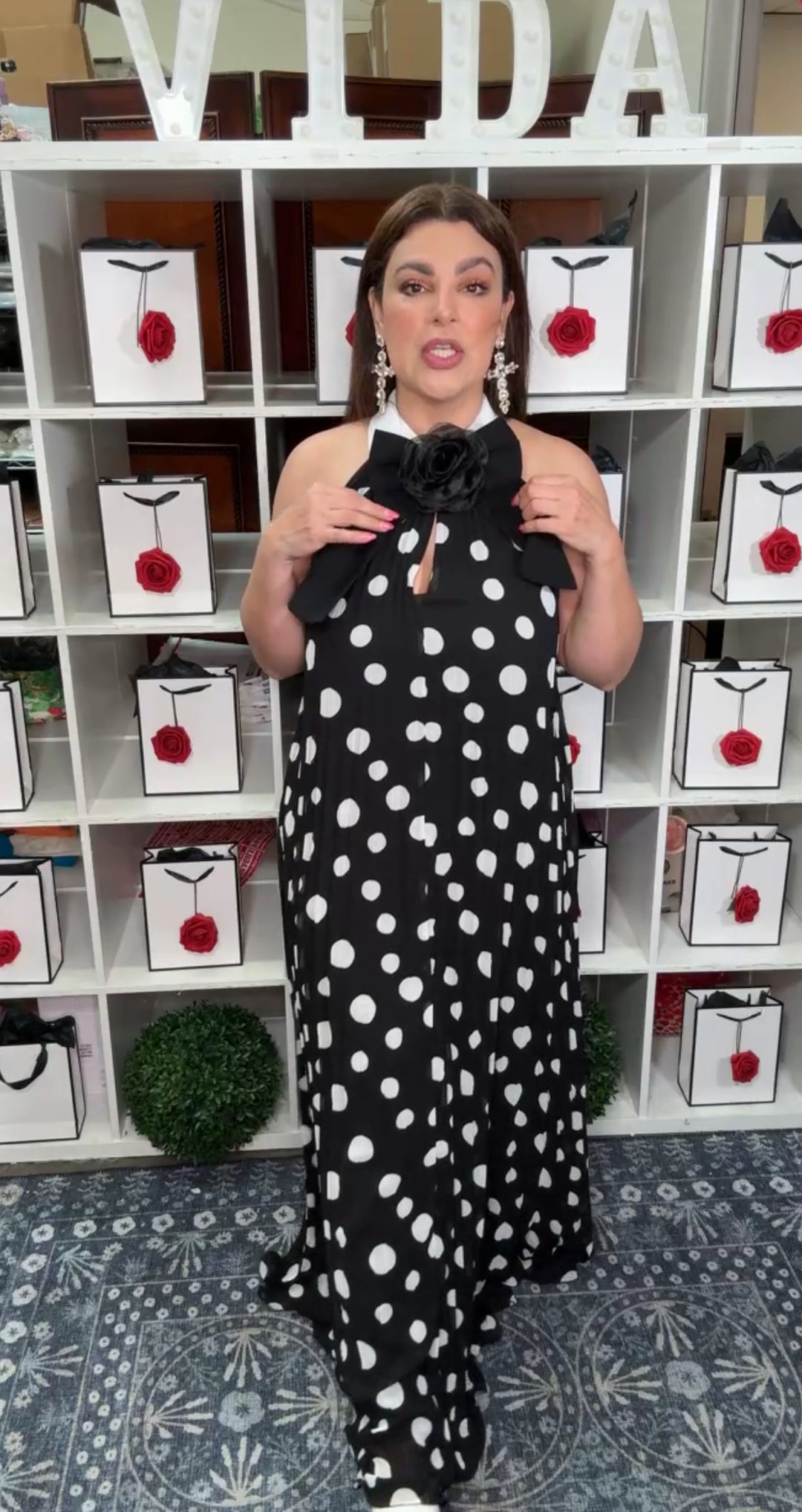 Vestido Mocha Boleado en Negro con Cinto Rafia Incluido (#396)