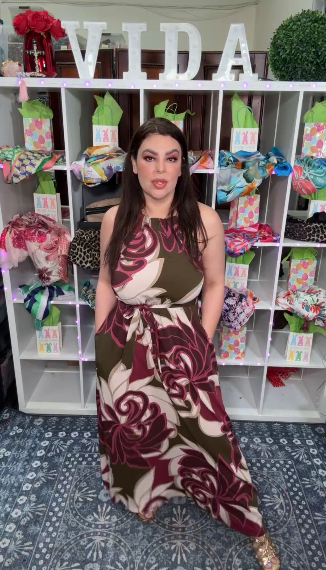 Vestido Magenta y Verde Cuello Halter Maxi (#153)