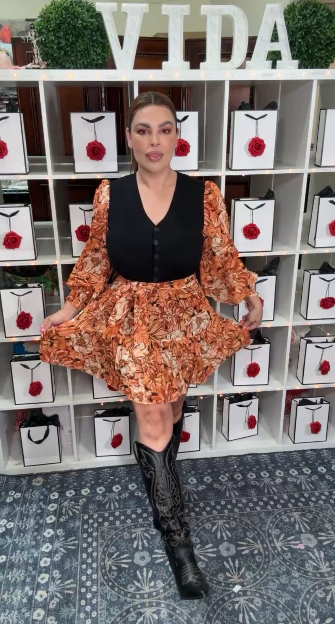 Vestido Naranja Floral Top Negro Sweater (#157)