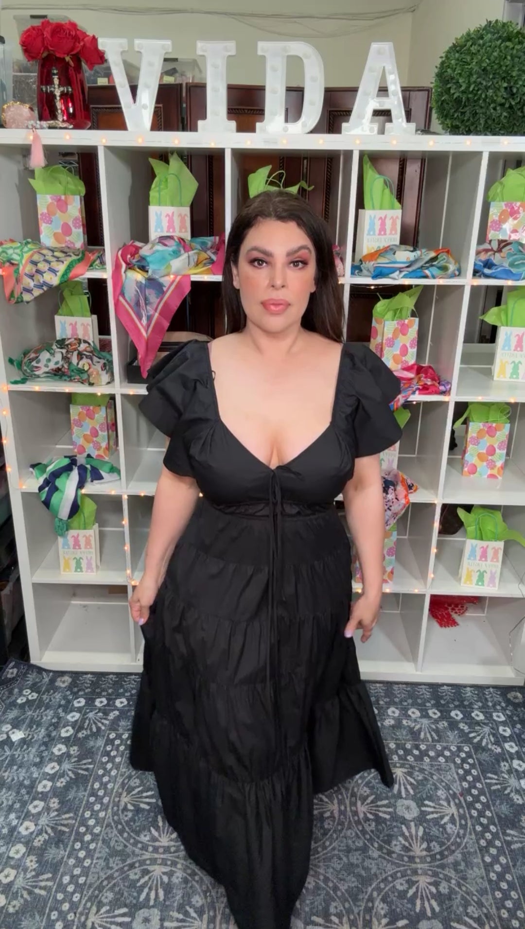 Vestido Negro con Barbas Stretch Tulum (#414)