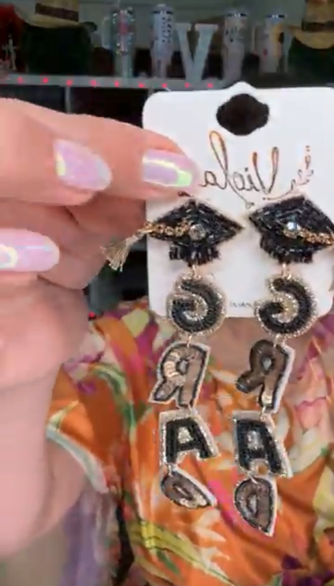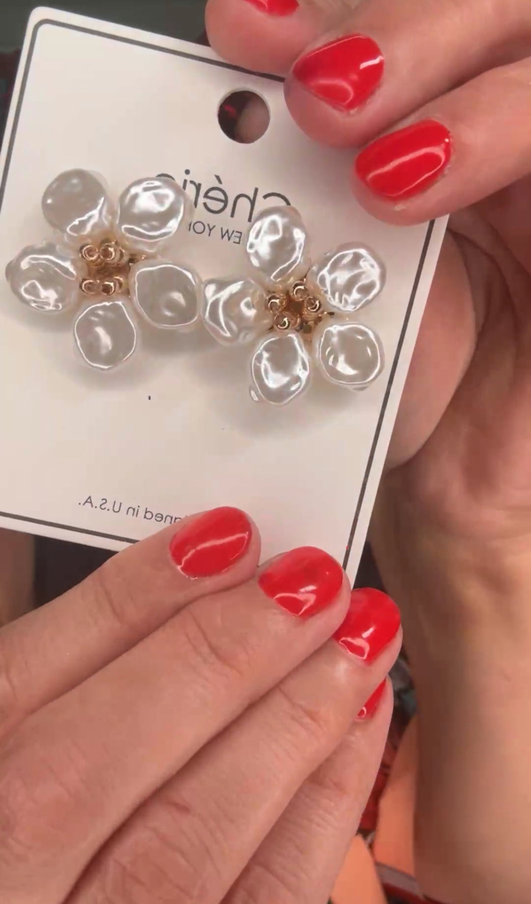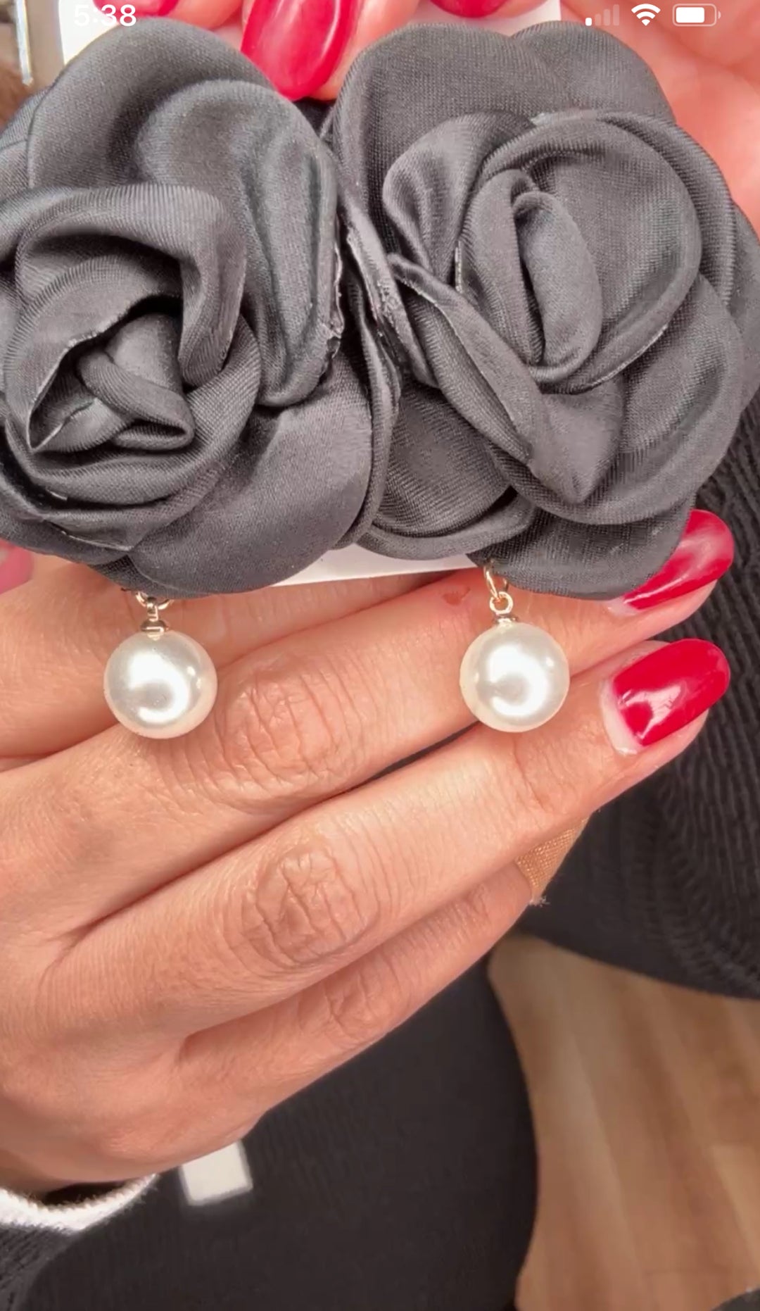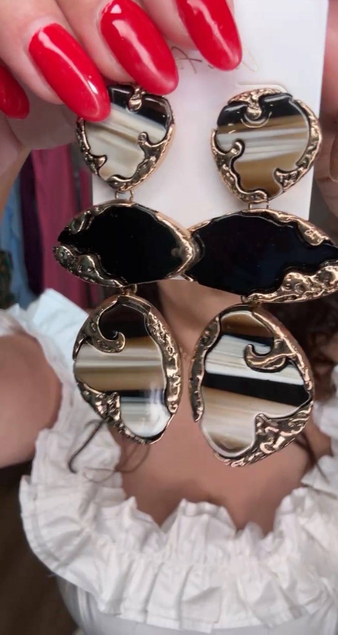 Arete Negro y Gris Flor Pistilos Tipo Carey