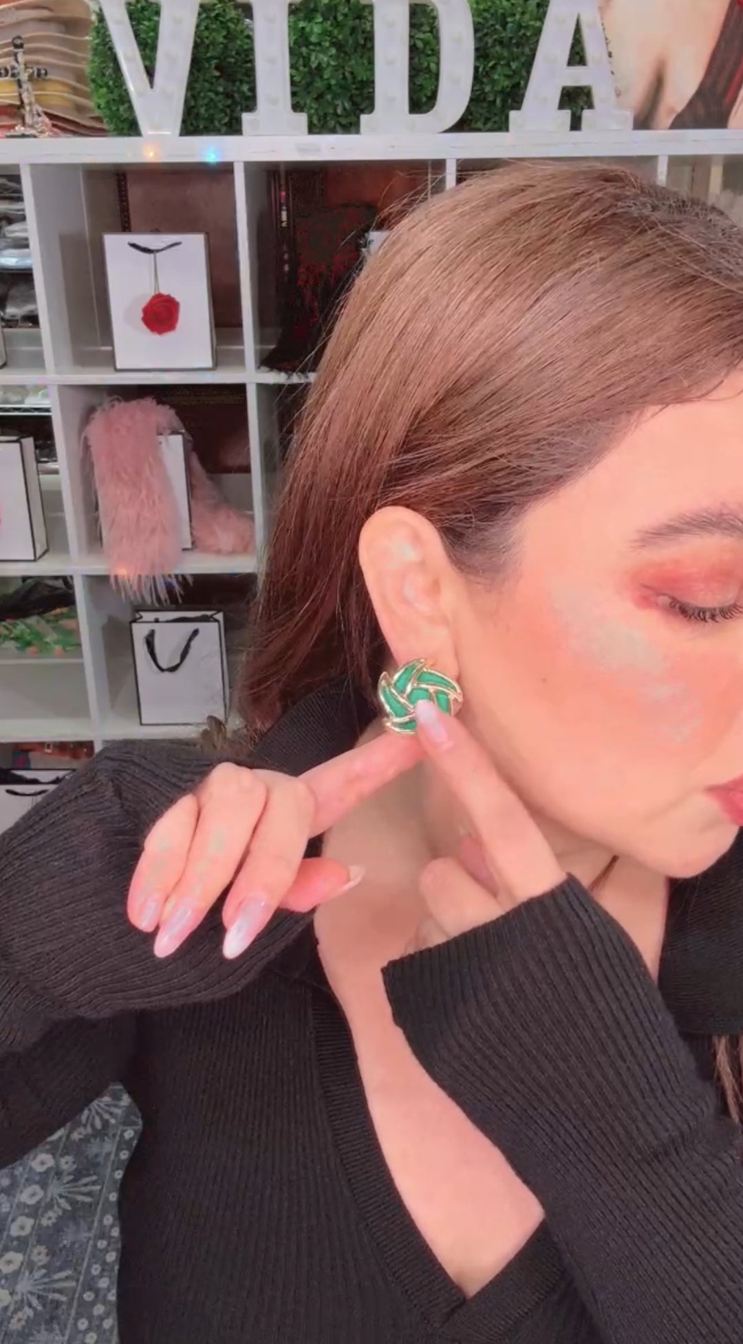 Arete Verde y Dorado Rafia