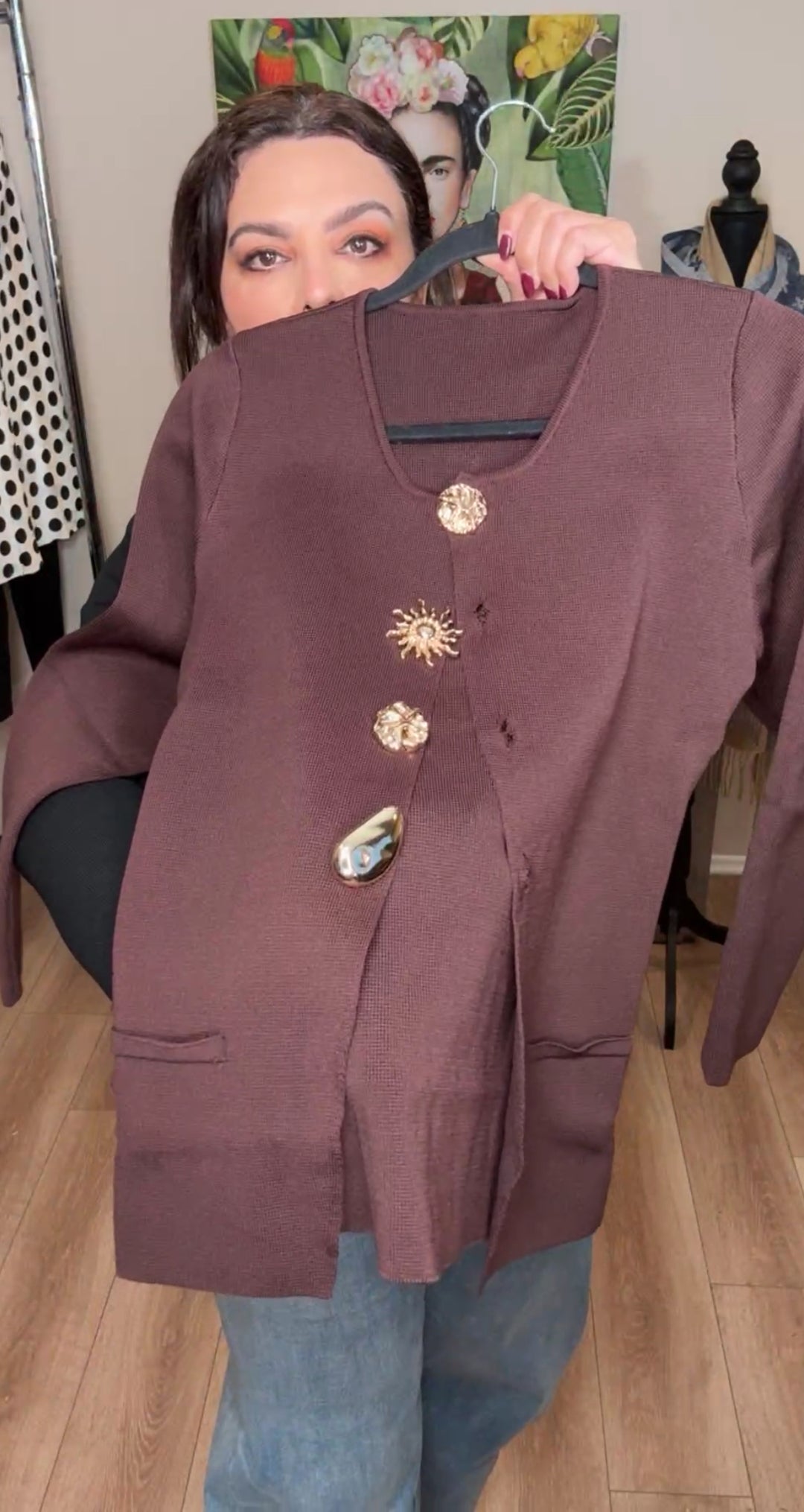 Blazer chocolate stretch botones dorados exótico (#106)