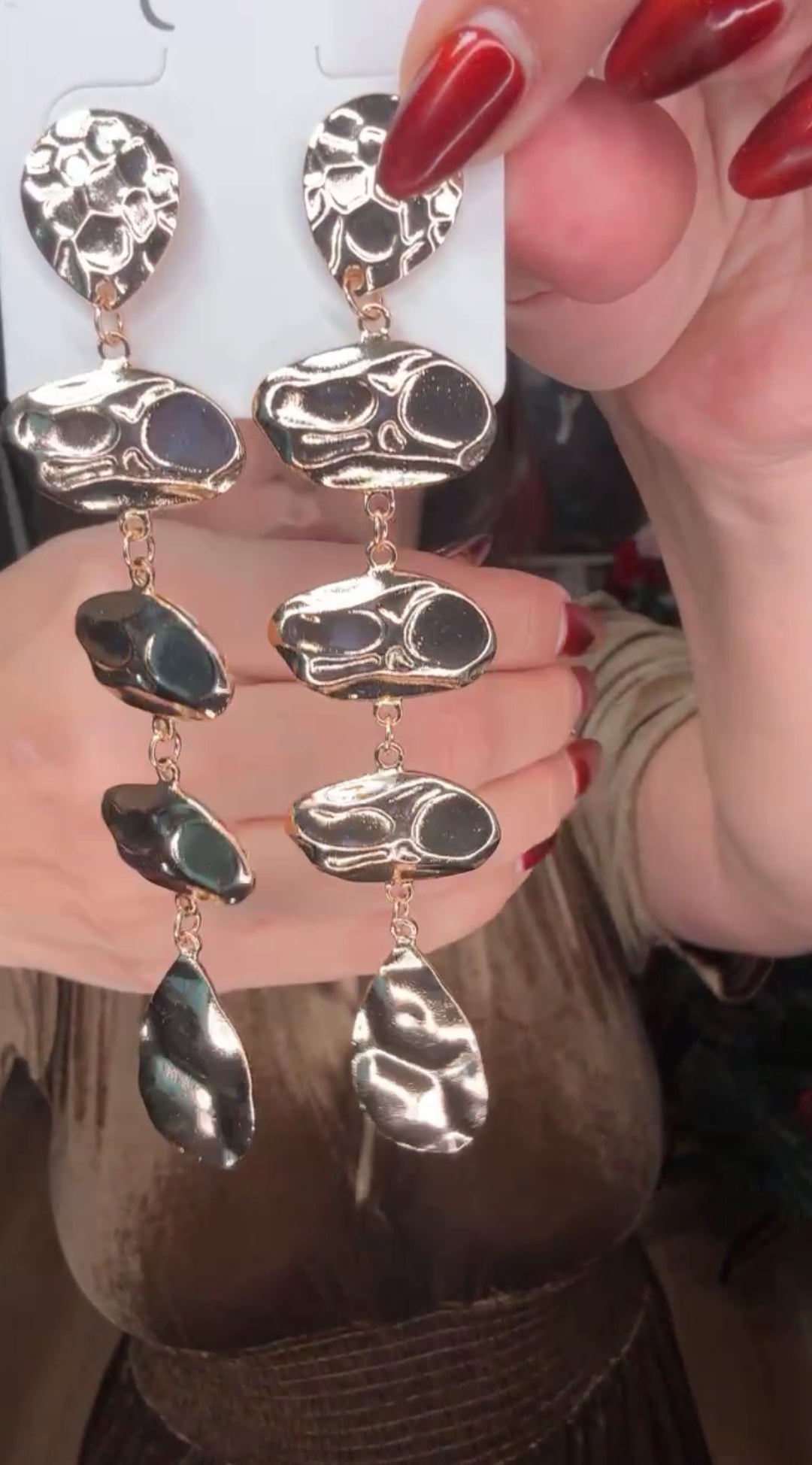 Arete dorado largo pepitas fancy (#102)