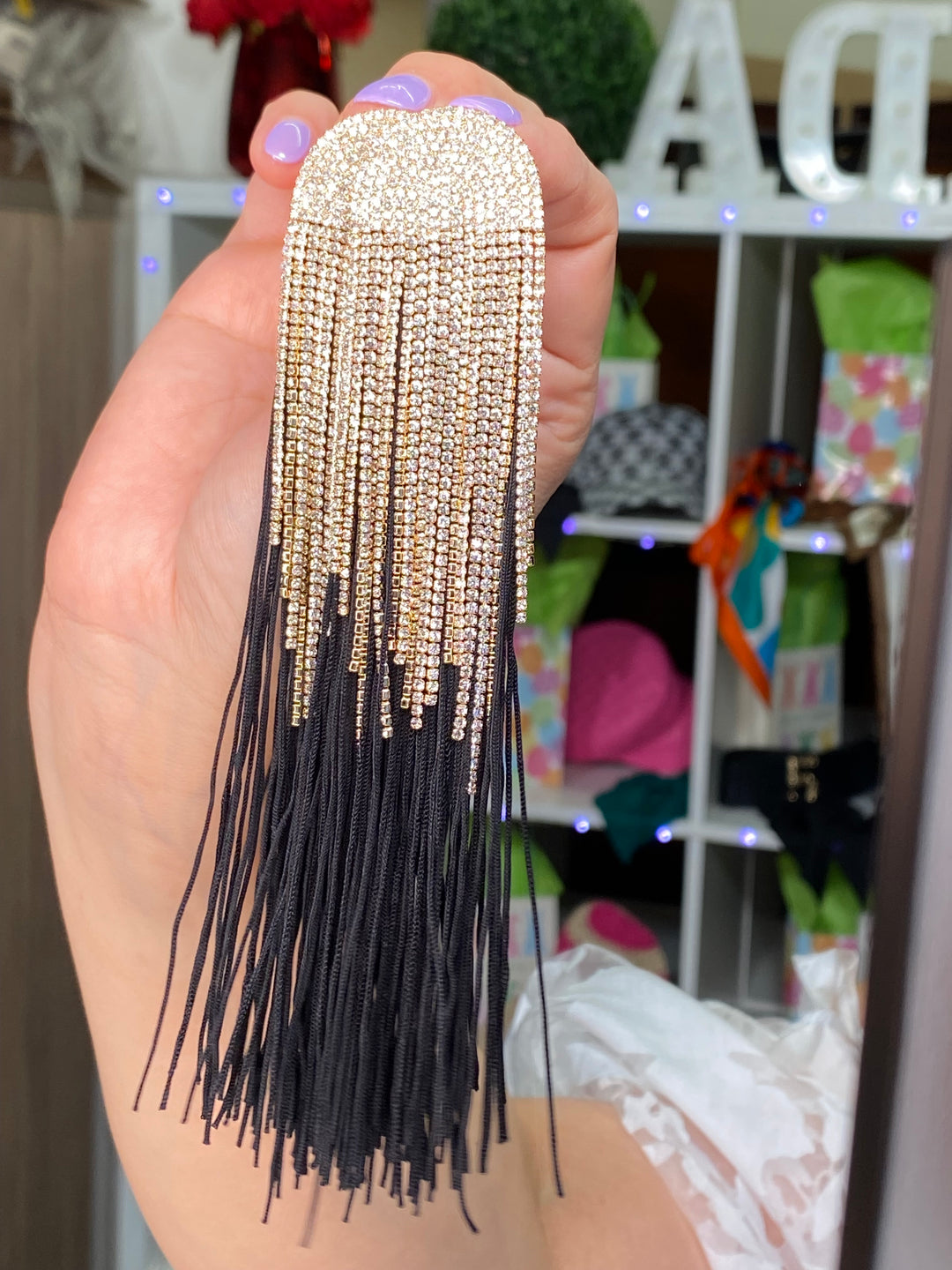 Arete Negro Octagon Chaquiras y Barbas (#228)