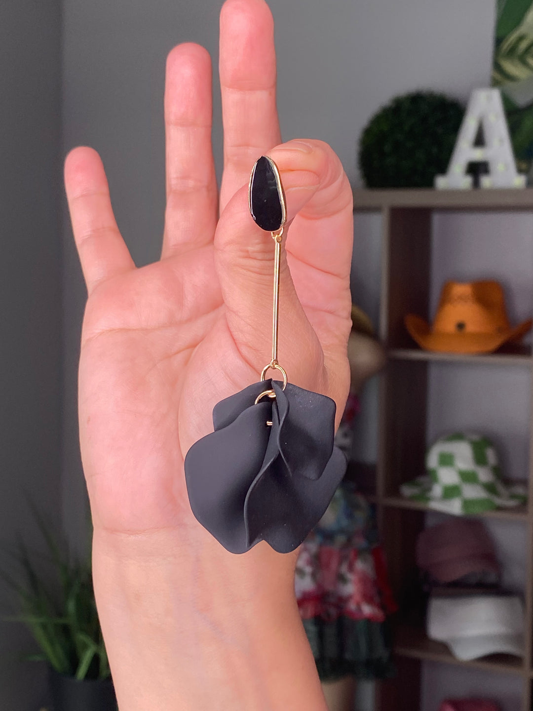 Arete Negro Tallo y Petalos (#111)