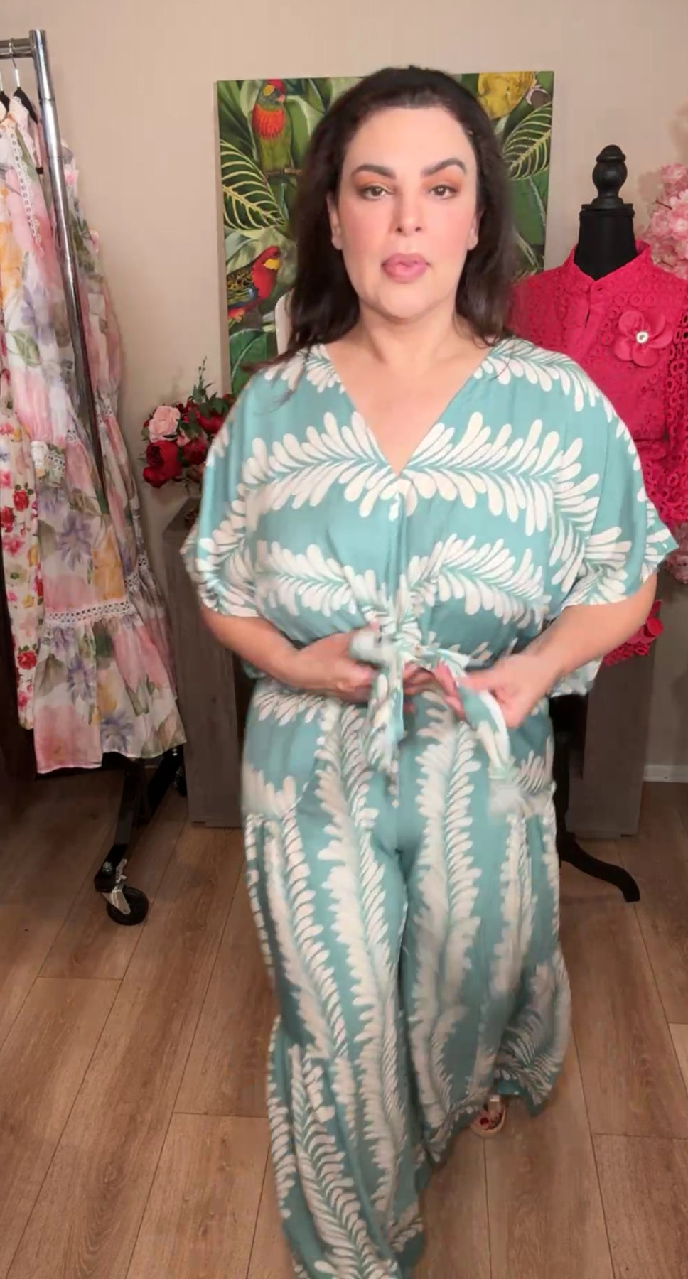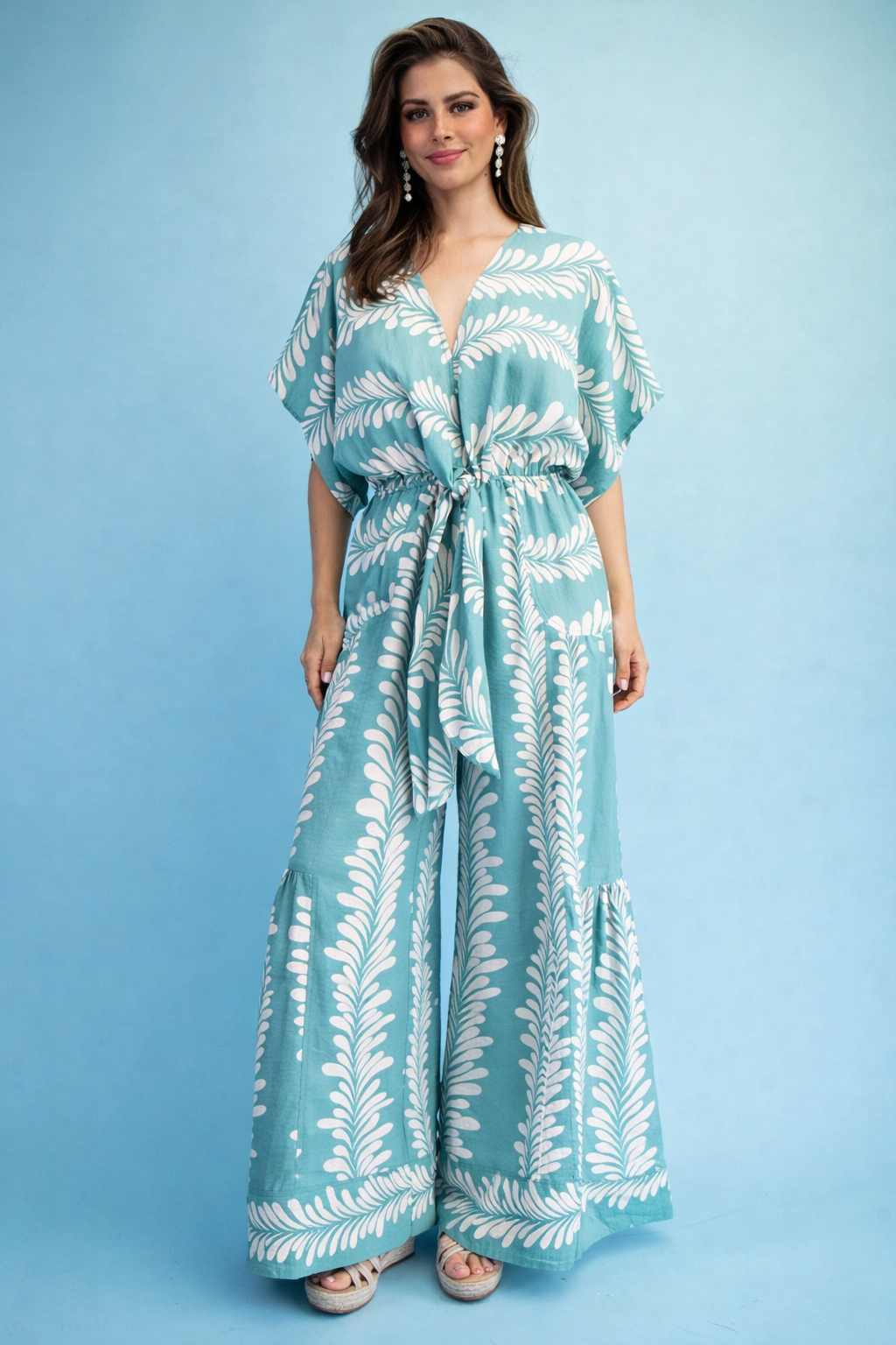 enterizo menta y blanco tropical pierna campana (#132)