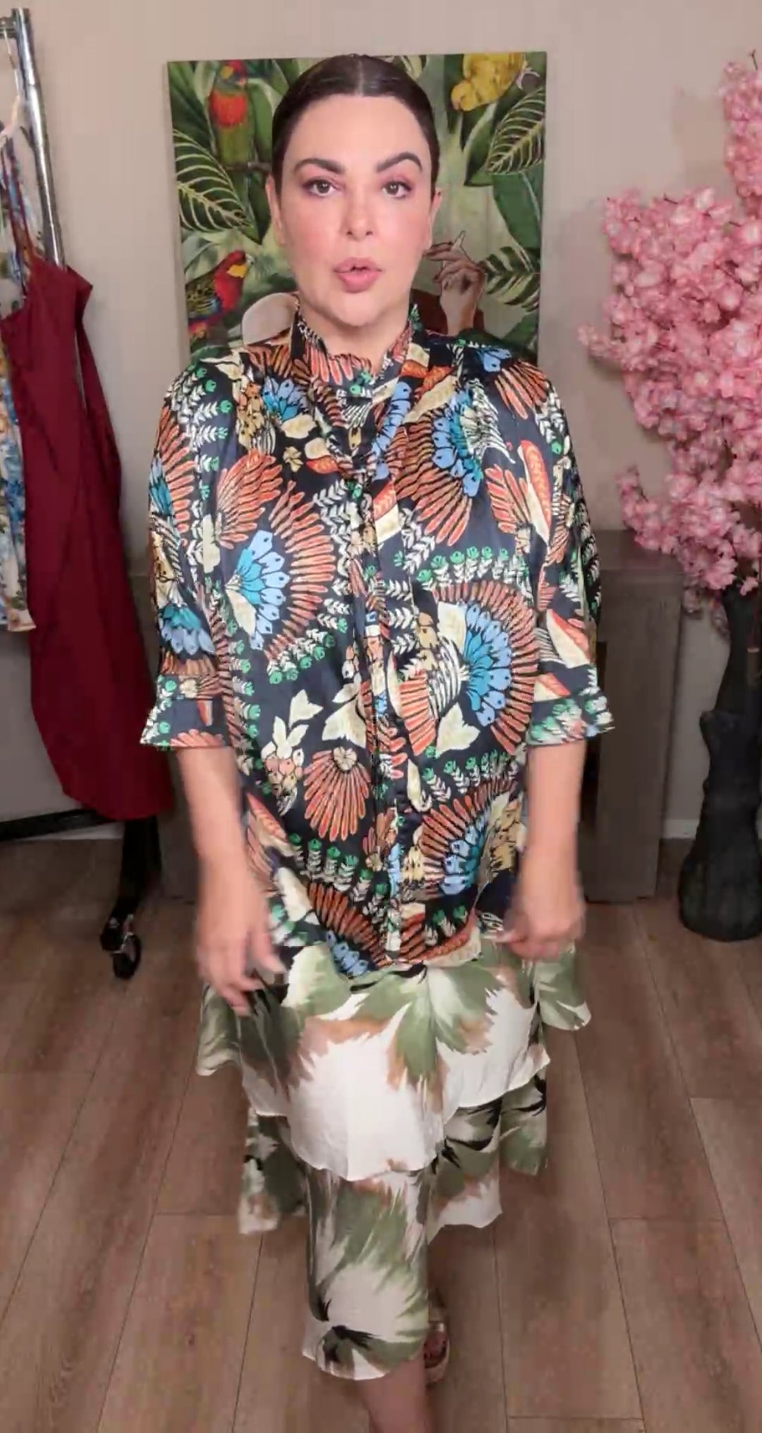 set leopardo pantalón y blusa manga olanes tela ultra fresca (#121)