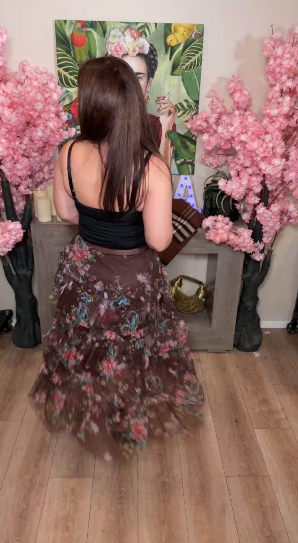 Falda Café Estampado Floral Tulle Stretch (#113)