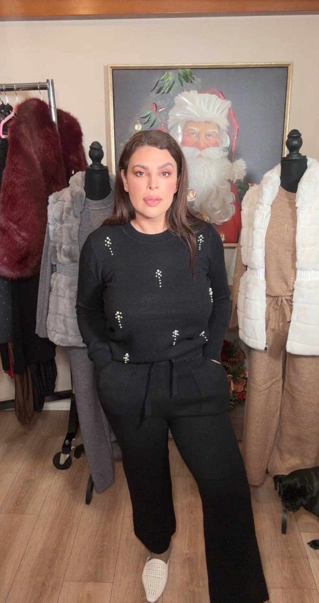 Set Negro de Punto CC Perlas Stretch Pantalón y Blusa (#129)