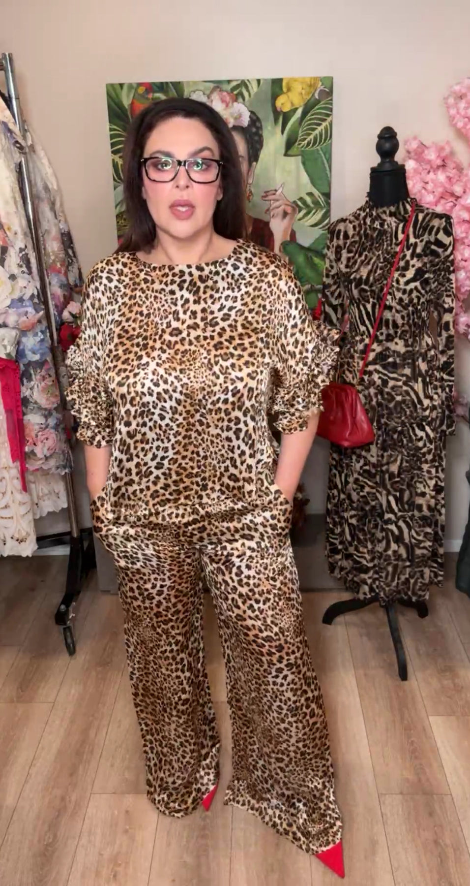 set leopardo pantalón y blusa manga olanes tela ultra fresca