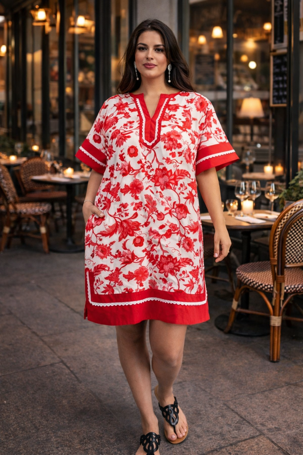 Vestido Olivo Flor Roja Suelto Midi (#318)