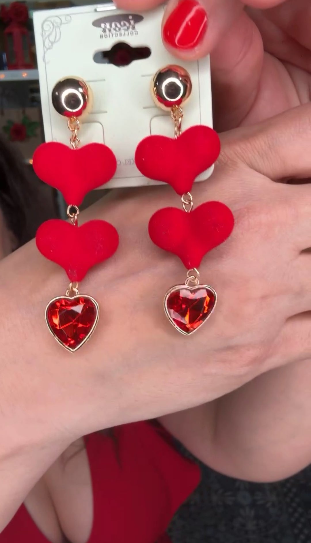 Arete Dorado Corazones Rojo Colgante (#106)