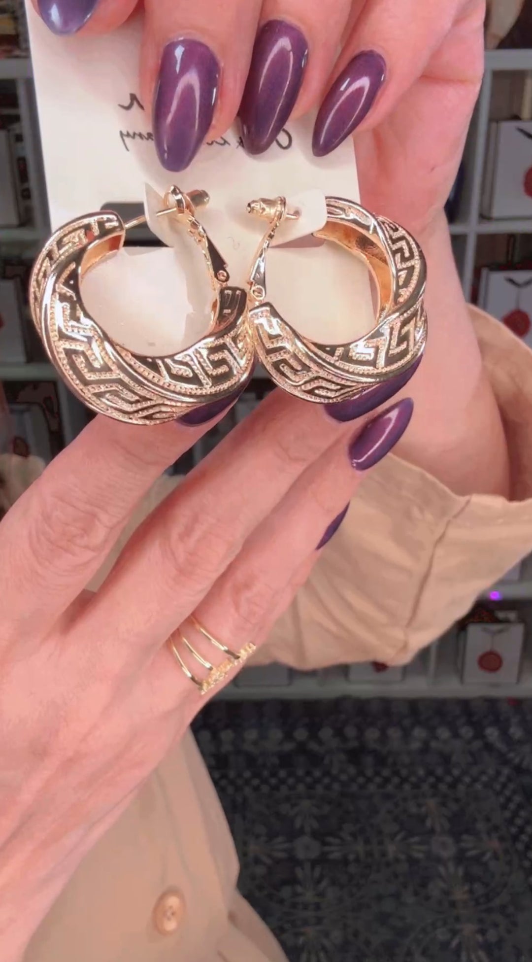 Arete Dorado Greca Arracada Gruesa Chica