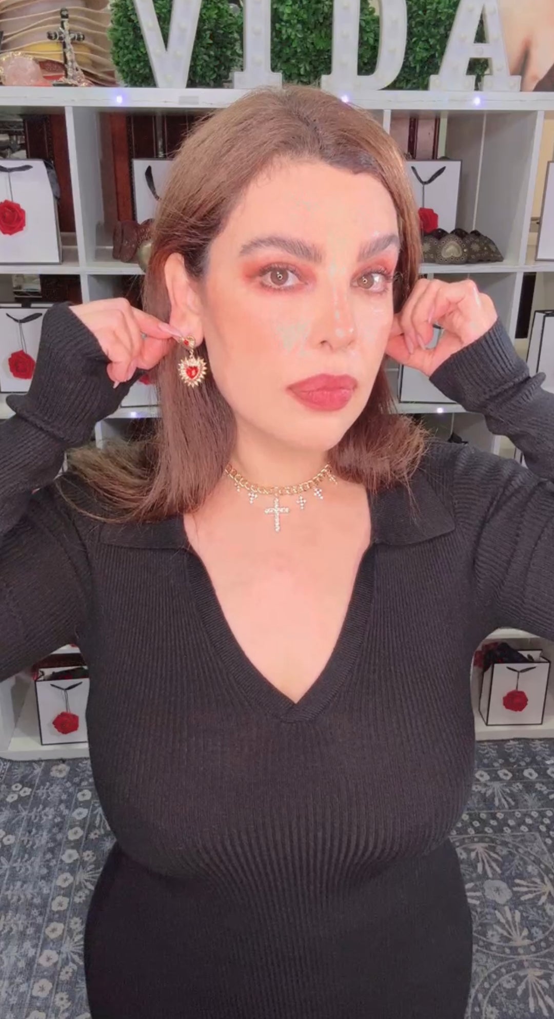 Arete Dorado Cruz Piedra Negra (#111)