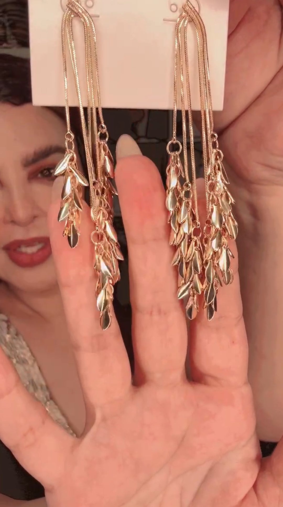 Arete Dorado Cascada Gotas Verdes
