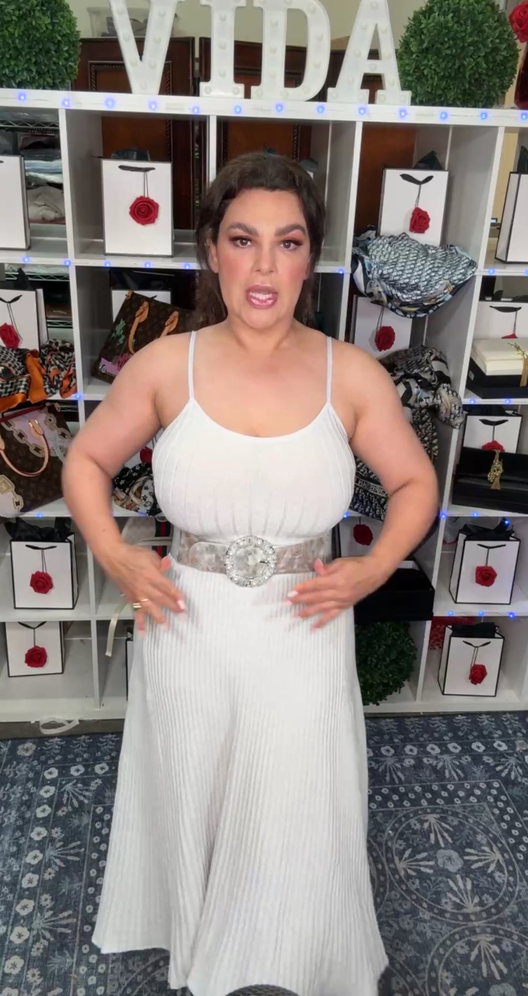 Vestido Plateado Metalizado con Cinto Perlas (#187)