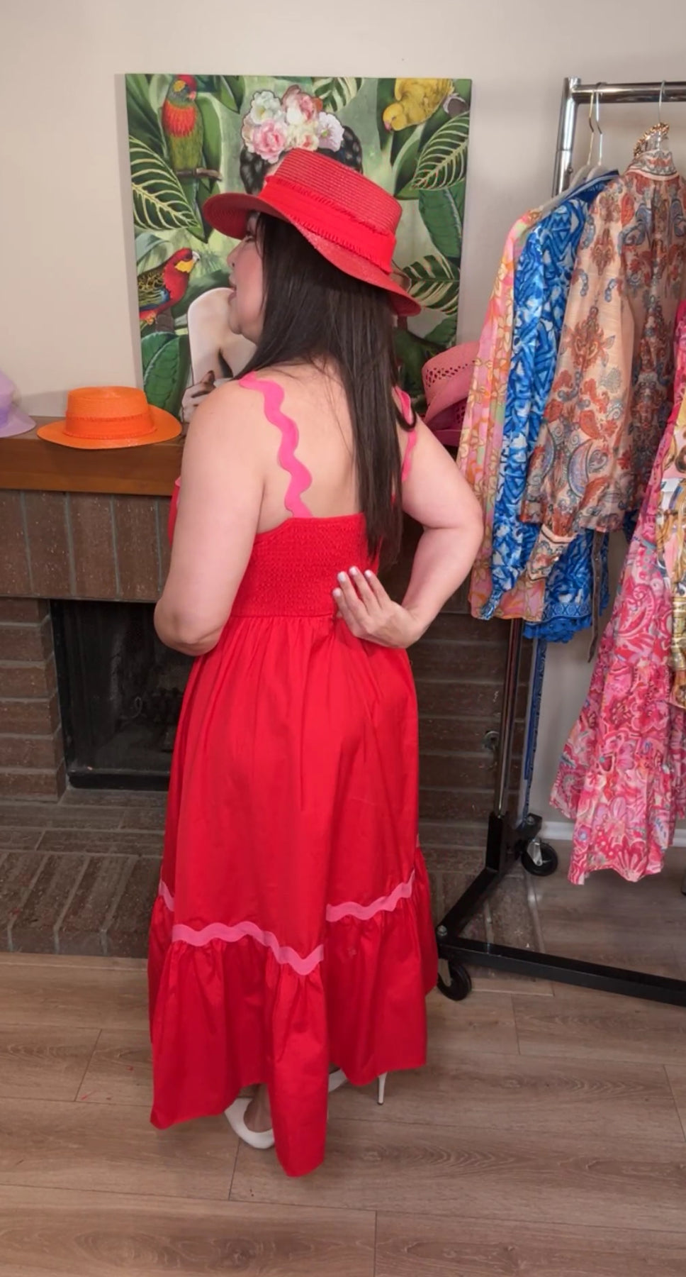 Vestido Rojo Ric Rac Rosa Maxi Resort Collection (#159)