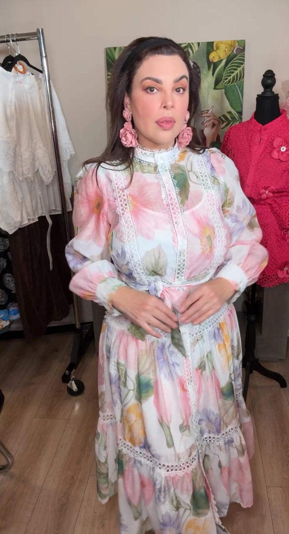 arete rosa palo flor doble gamuza (#109)