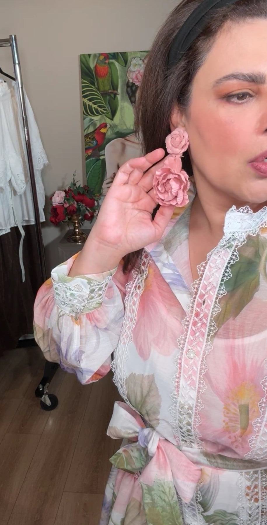 arete rosa palo flor doble gamuza