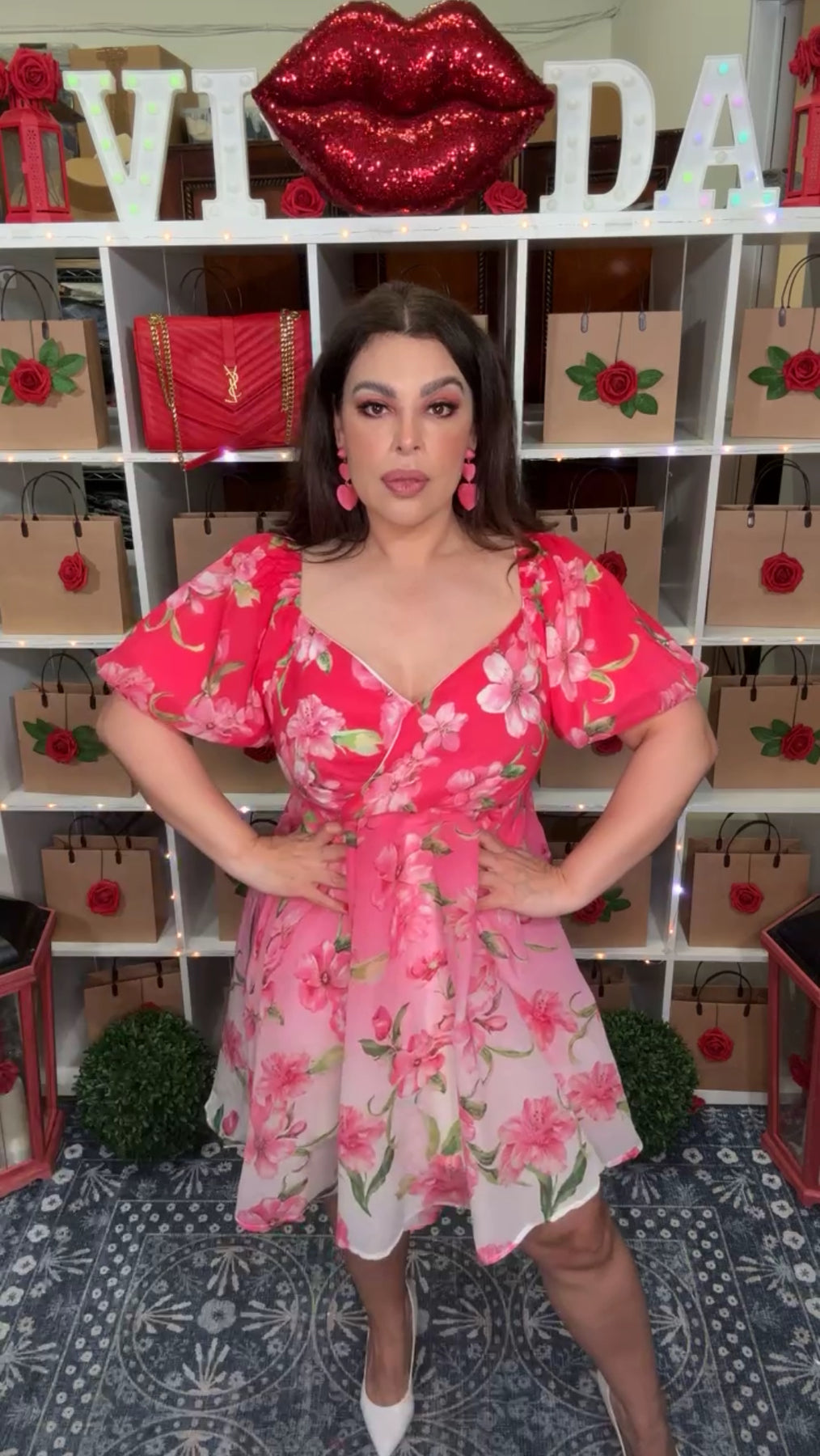 Vestido Rosa y Blanco Chifon Floral Ombre Mini (#268)