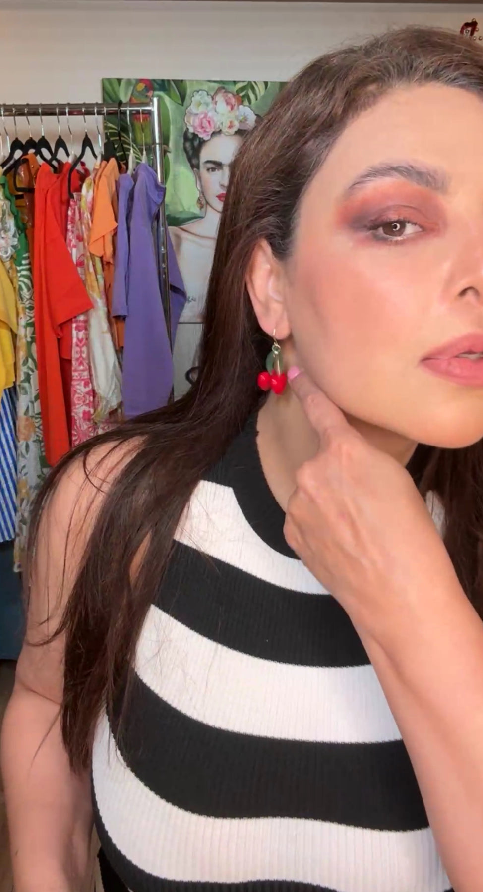 Arete Rojo Cherries Corazon Doble (#124)