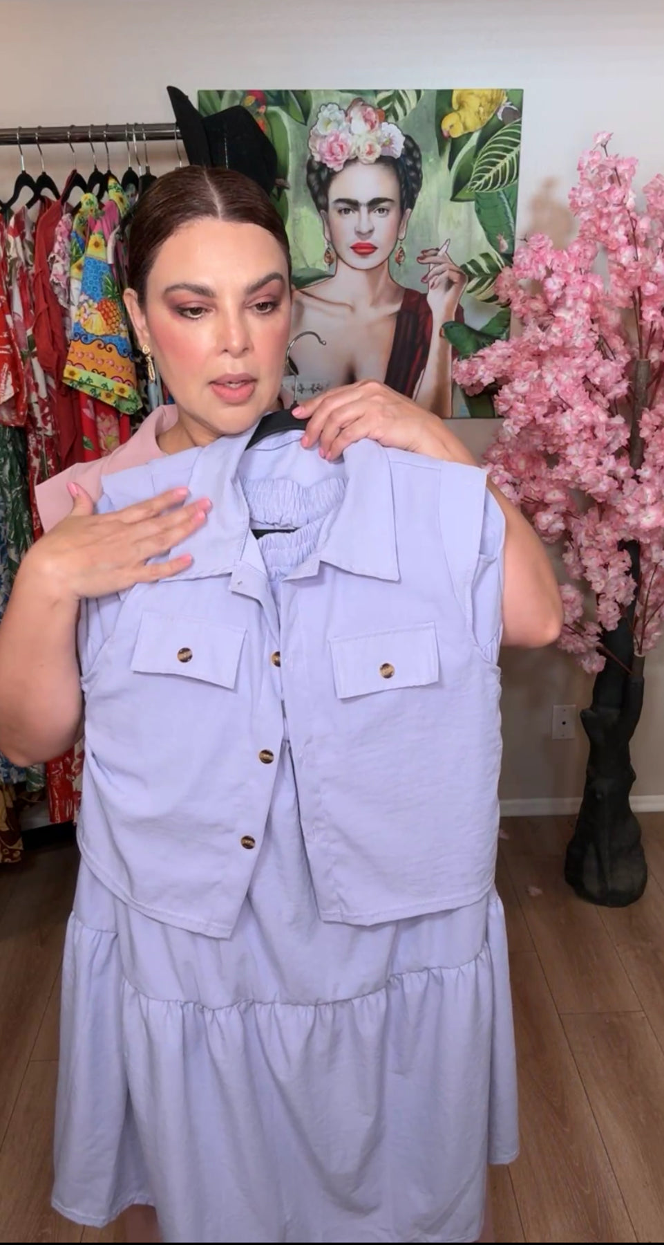 Una opción fresca para una salida casual o un evento de día. ¡Compleméntalo con zapatillas blancas o sandalias! 💜👚