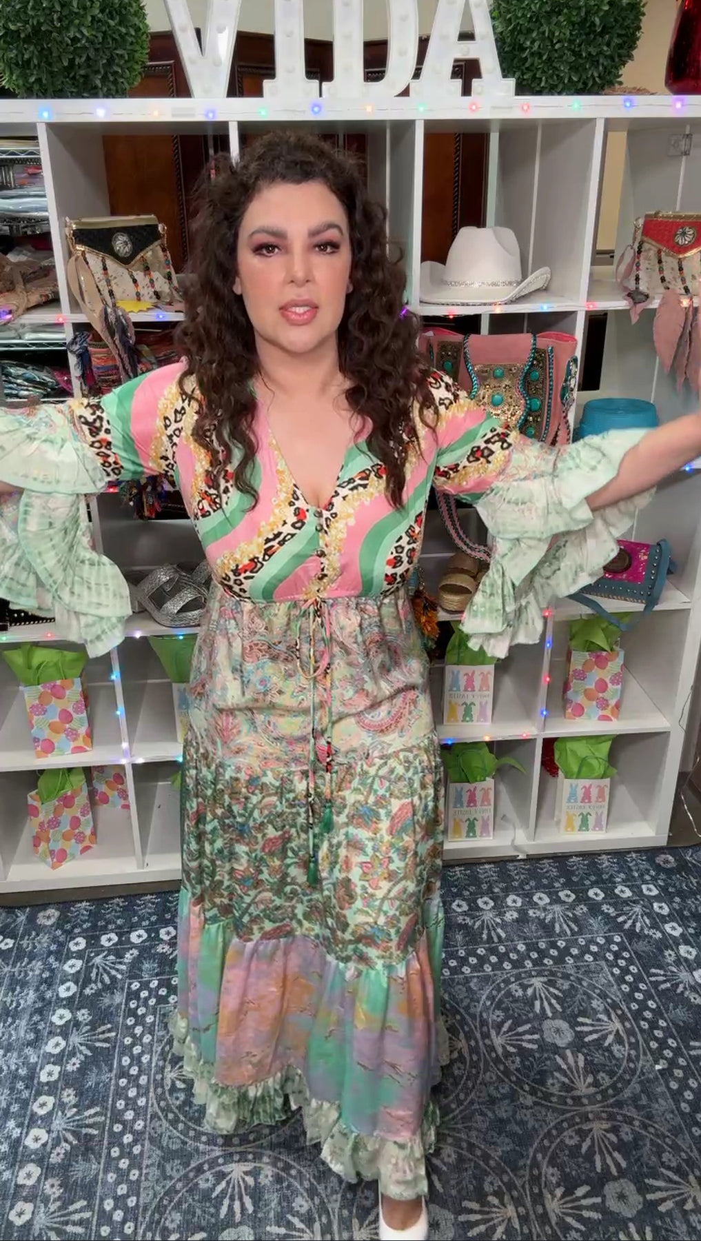 Vestido Verde y Rosa Pasteles Animal Print Maxi Bohemio